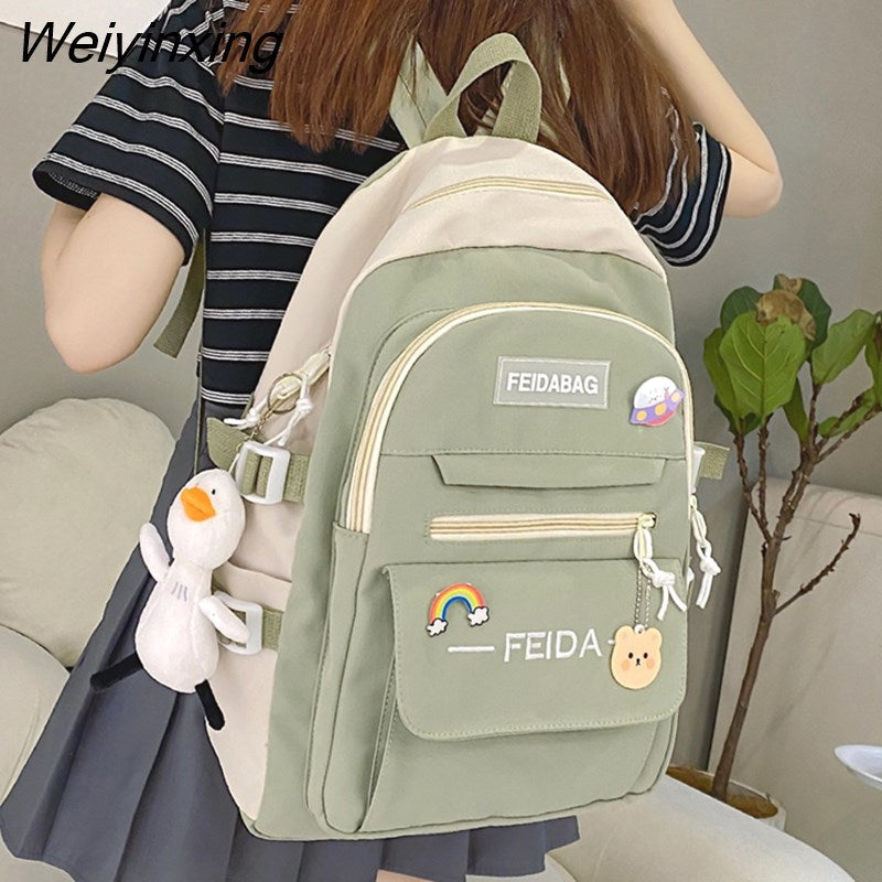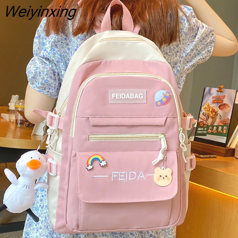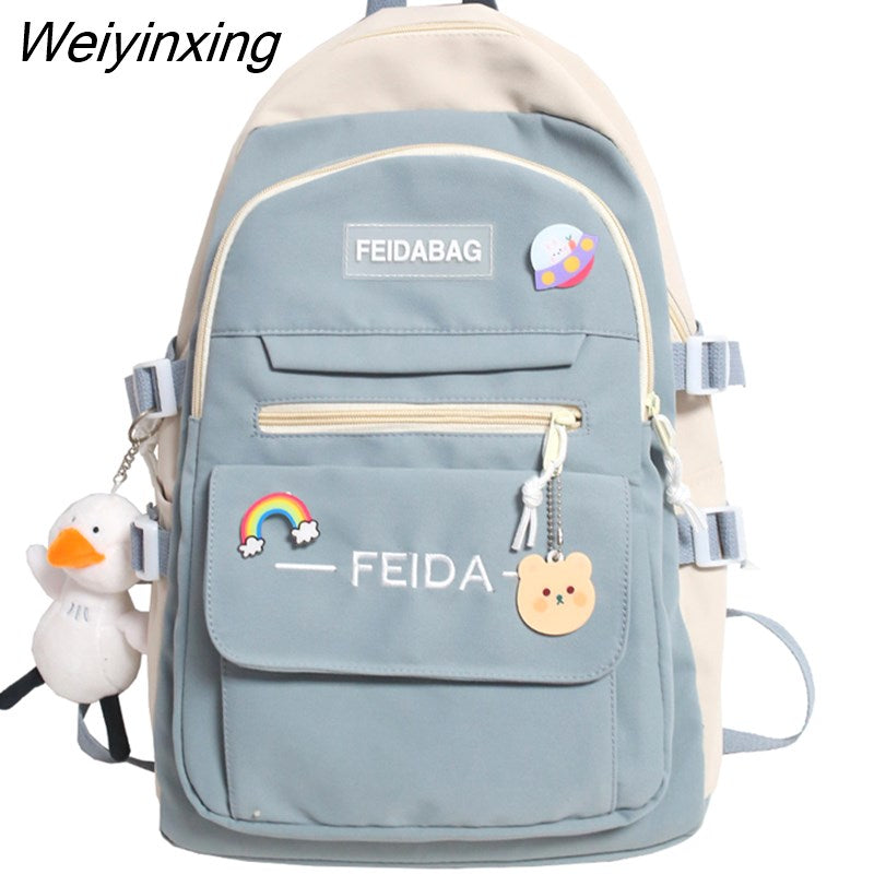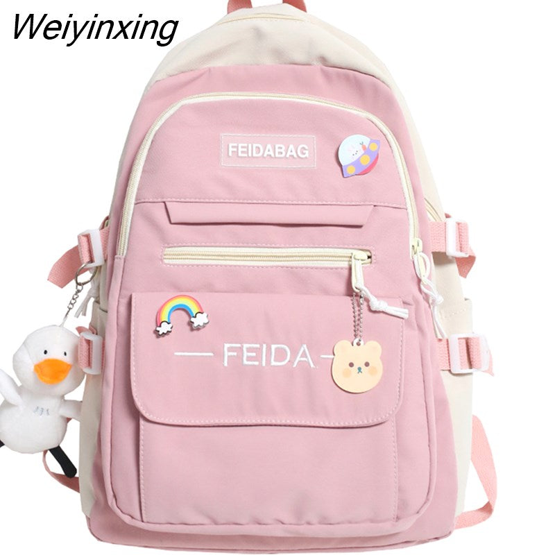 Weiyinxing Laptop Female Book Bag Fashion Cute Women Backpack School Ladies Cool Harajuku Bag Girl Nylon Kawaii Backpack Waterproof