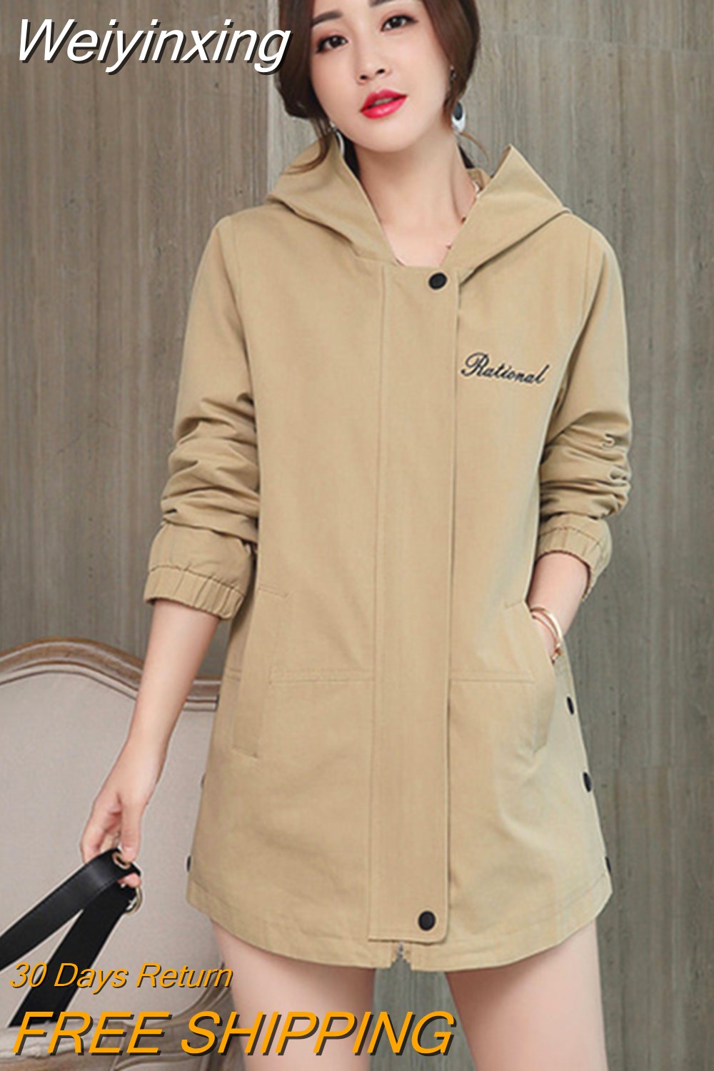Weiyinxing large size 7XL windbreaker Coat women's mid-length jacket 2023 spring autumn all-match hooded outwear women Basic Coat