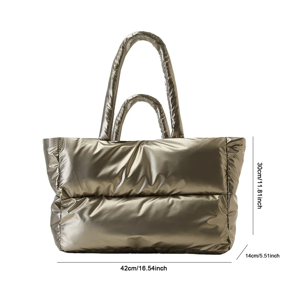 Weiyinxing Large Tote Padded Handbags Designer Quilted Women Shoulder Bags Luxury Nylon Down Cotton Crossbody Bag Winter Purse 2024