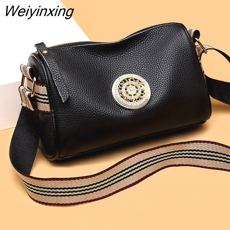 Weiyinxing Litchi pattern Genuine Leather Shoulder Crossbody Bag For Women 2023 Luxury Solid Color Cow Leather Small Ladies Handbag