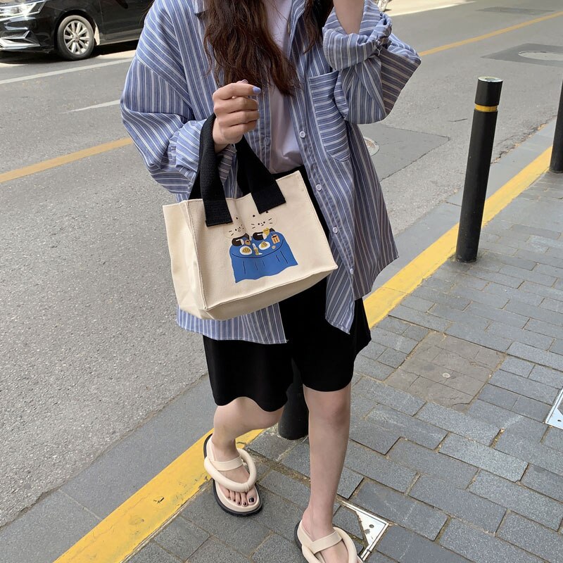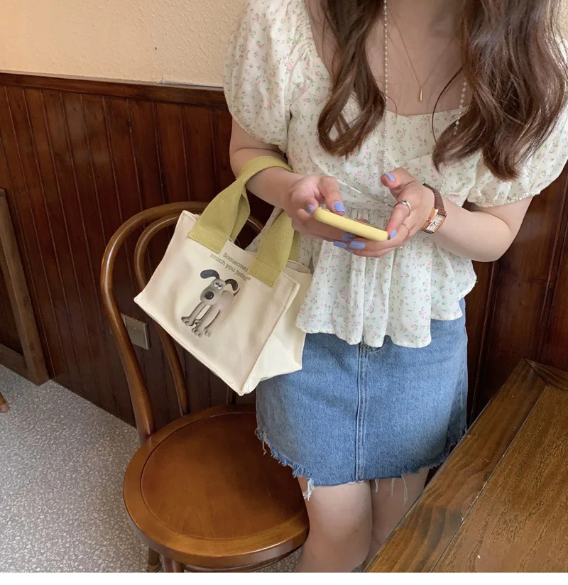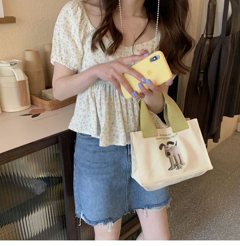 Weiyinxing Lunch Bag for Women Funny Cute Dog Cartoon Bentobreakfast Food Box Student All-match Tote Bag Portable Picnic Travel
