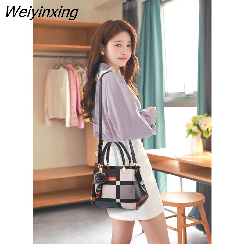 Weiyinxing Luxury Handbag Women Stitching Wild Messenger Bags Designer Brand Plaid Shoulder Bag Female Ladies Totes
