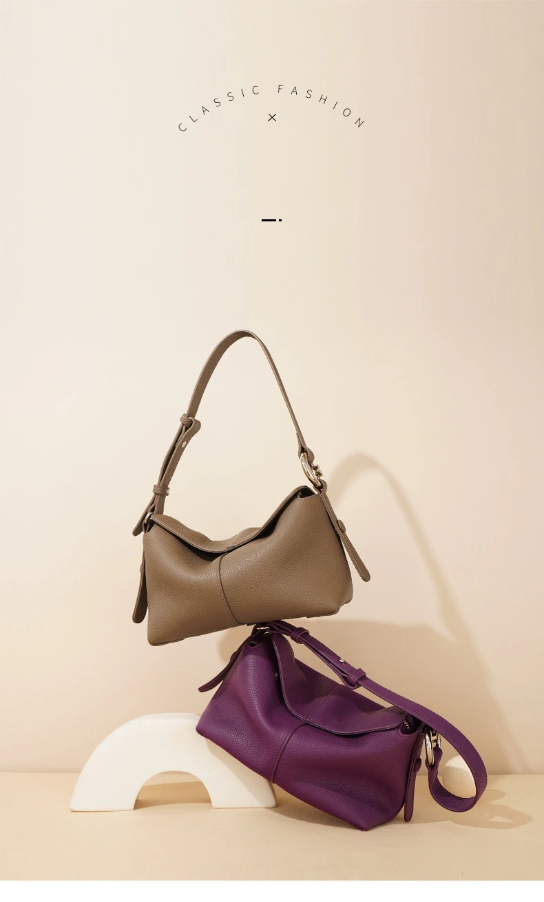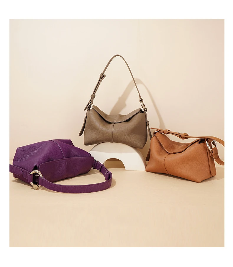 Weiyinxing Lychee Grain Cowhide Pillow Bag Simple Casual Versatile Commuter One Shoulder Bag Women's Real Leather Soft Handbag
