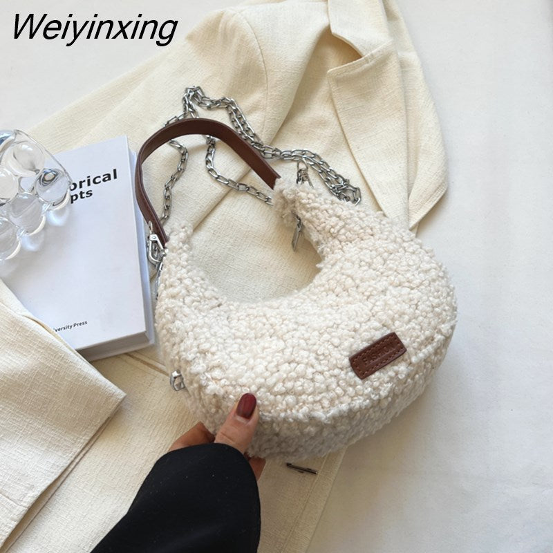 Weiyinxing Mantang Plush Crossbody Bags for Women Female New 2023 Winter Trend Winter Fashion Chain Saddle Bag Handbags Totes