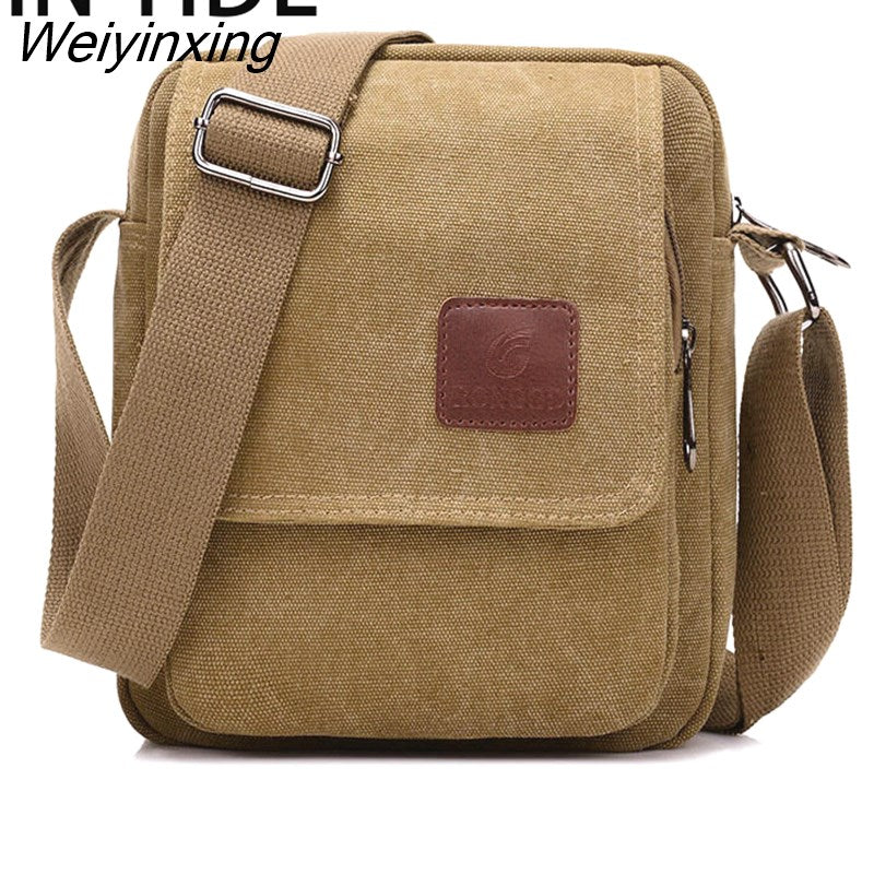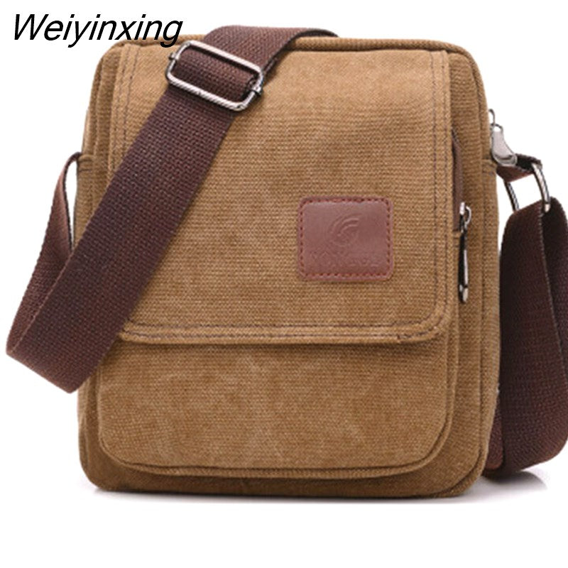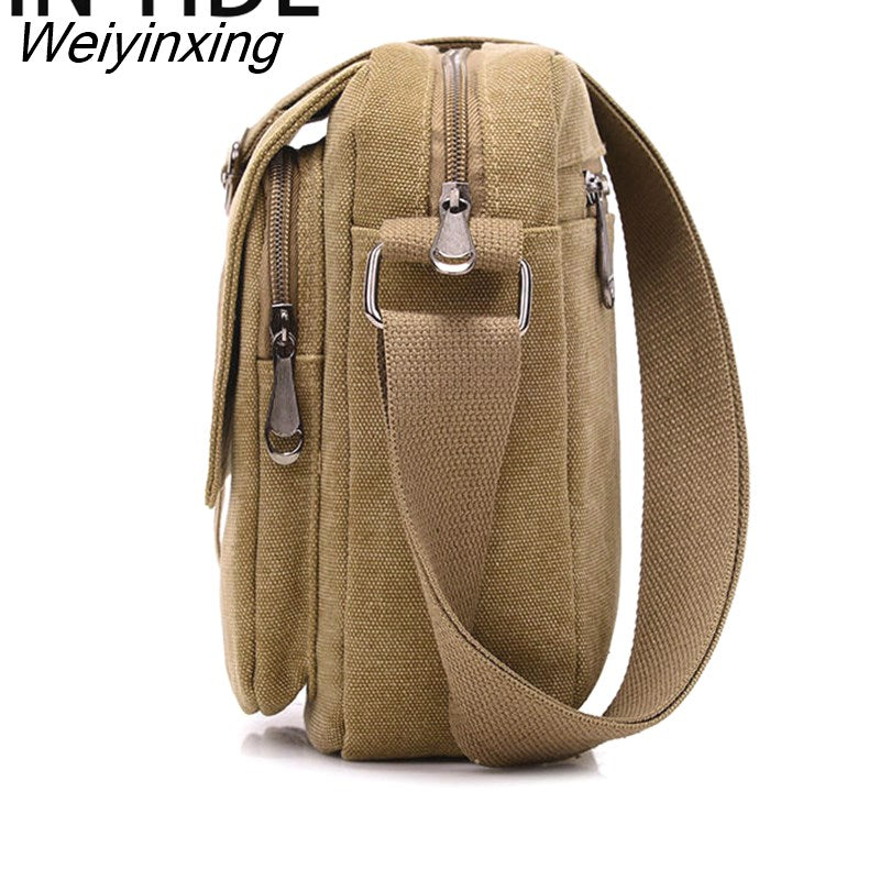Weiyinxing Men's Casual Style Canvas Shoulder Messenger Bags Multi-pocket with lid Handbag Crossbody Flap Bag For Man Business Sling Bag