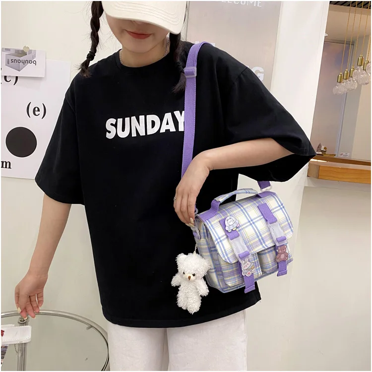 Weiyinxing Mini Crossbody Bag for Women 2023 Designer Handbag Girls Japanese Jk Style Color Contrast Plaid Stripe Handbag Shoulder Bag
