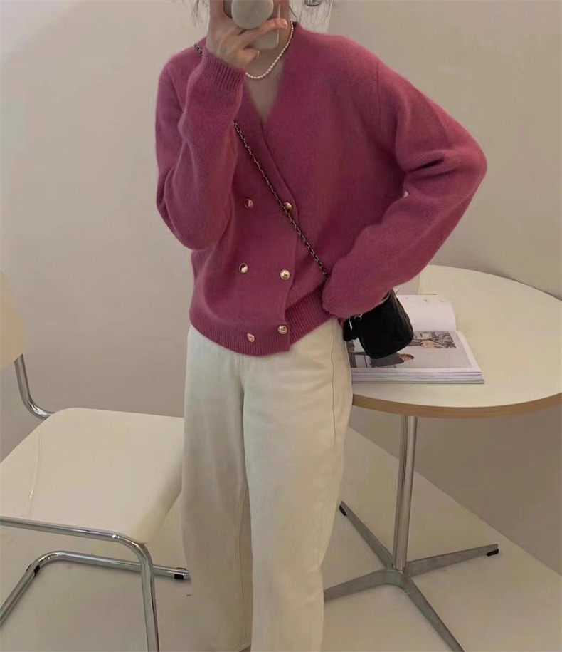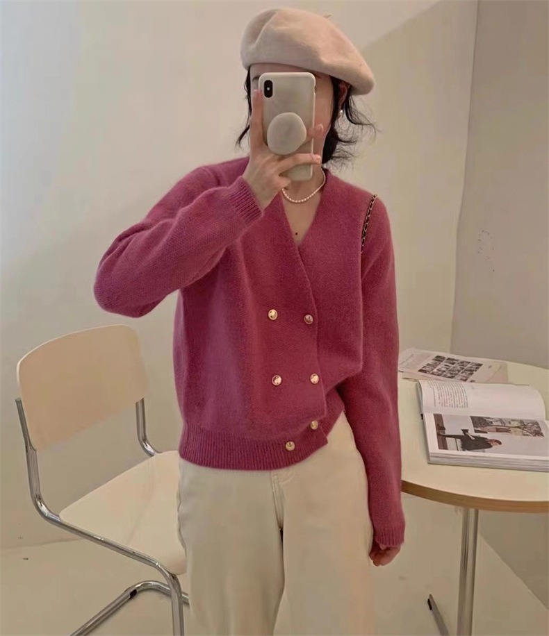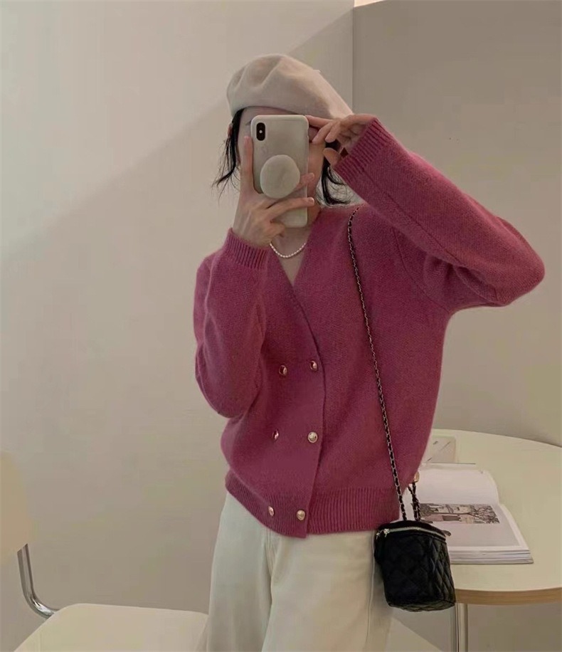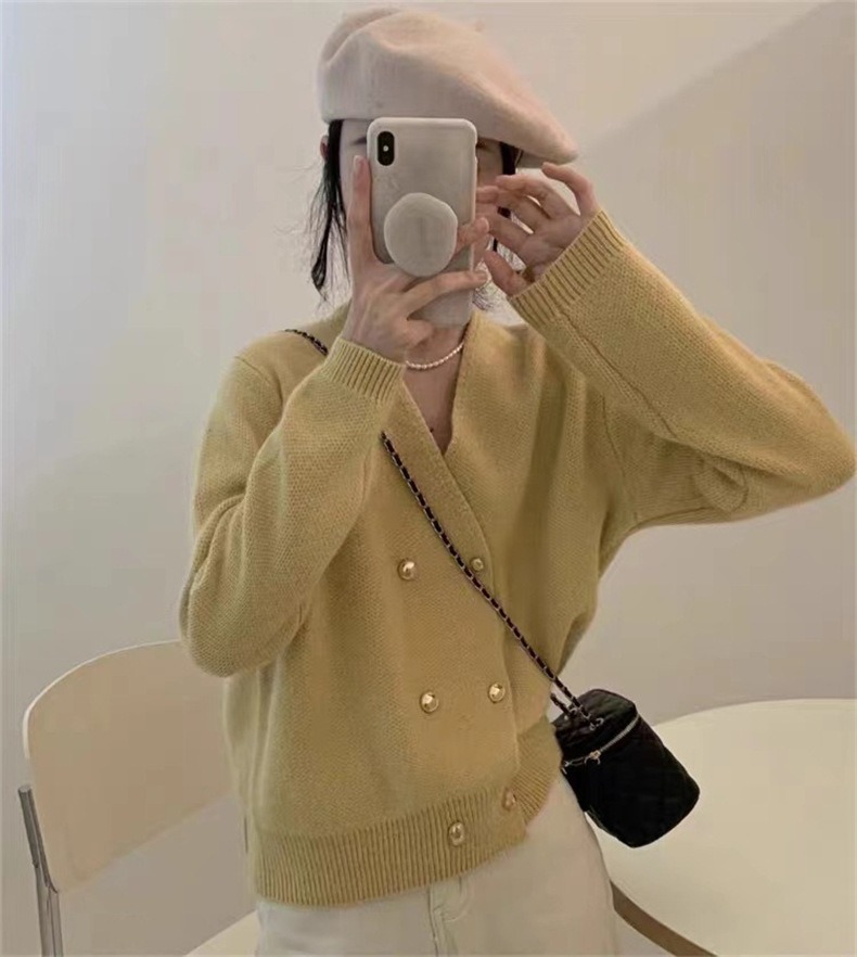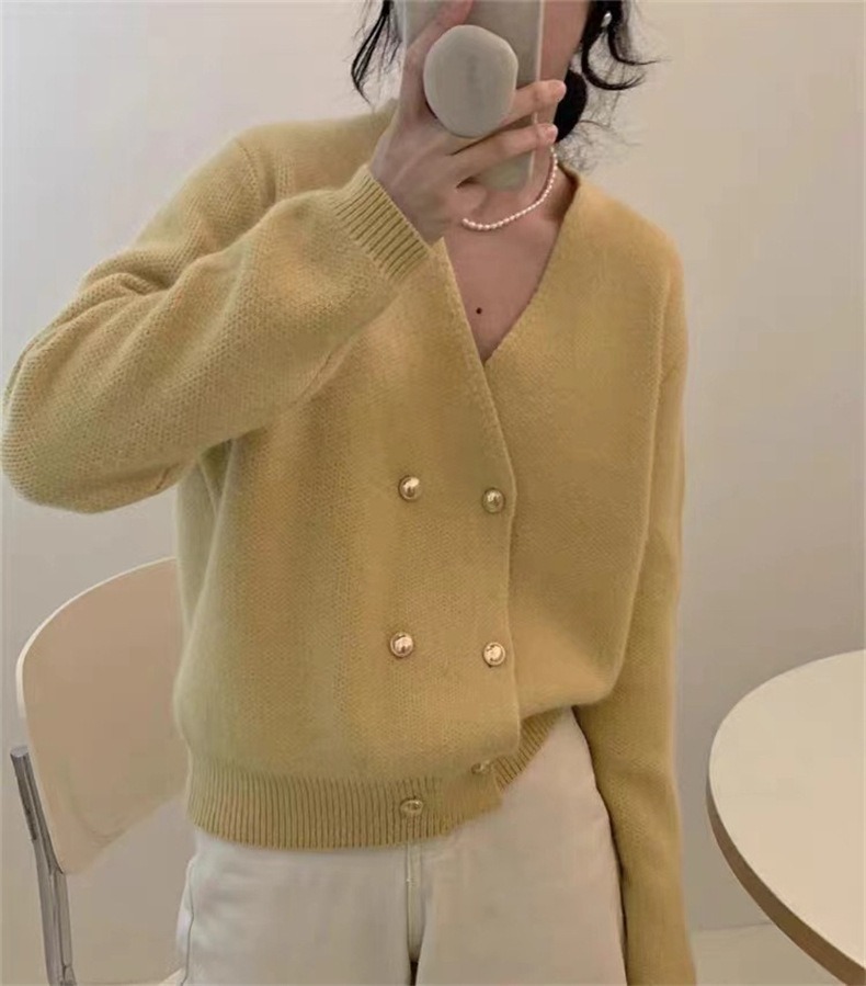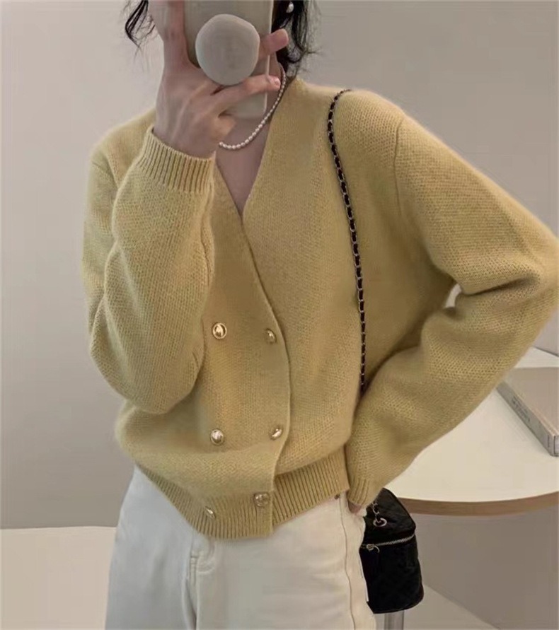 Weiyinxing New Casual Knitted Cardigan Woman Sexy V-Neck Double Breasted Women's Sweater Jacket Sweet Solid Color Female Jumper T213