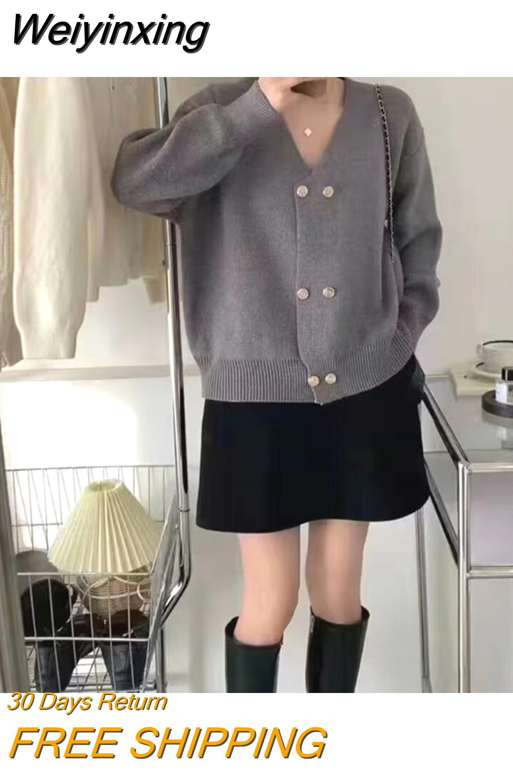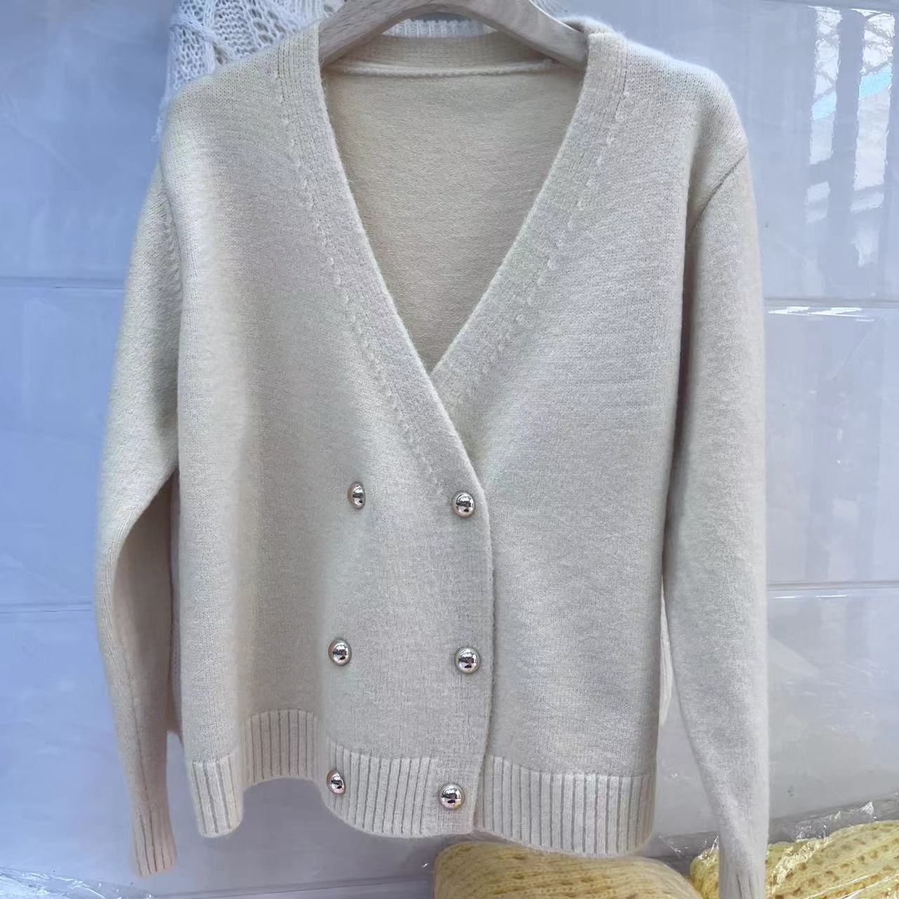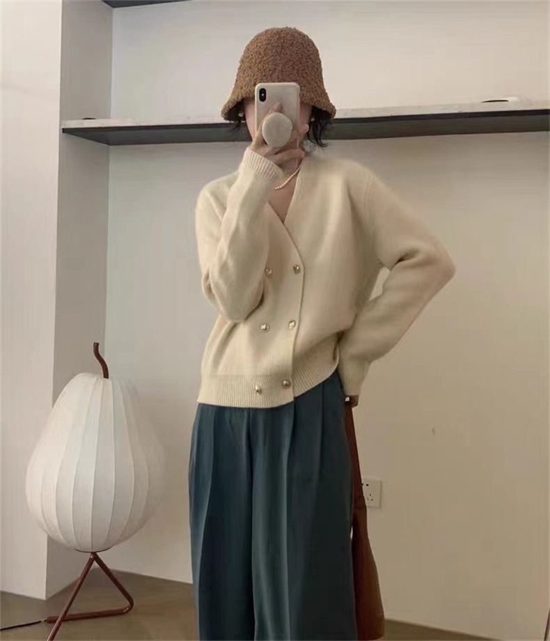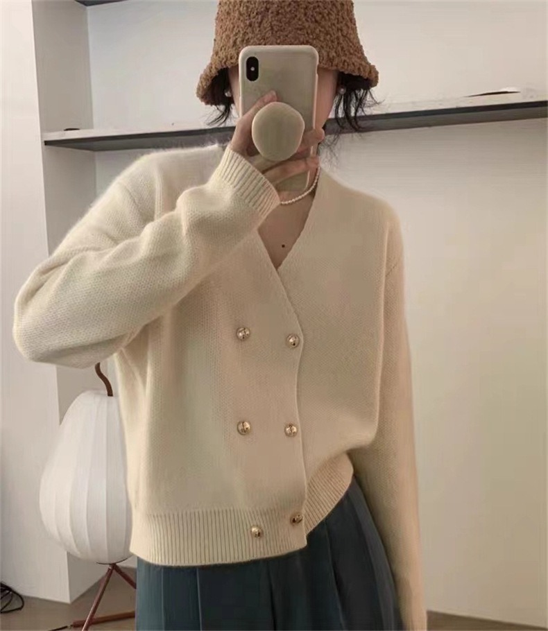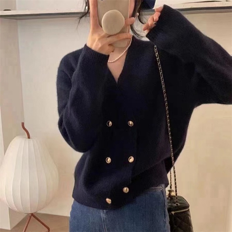 Weiyinxing New Casual Knitted Cardigan Woman Sexy V-Neck Double Breasted Women's Sweater Jacket Sweet Solid Color Female Jumper T213