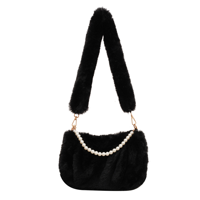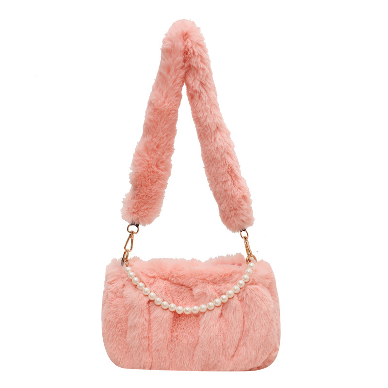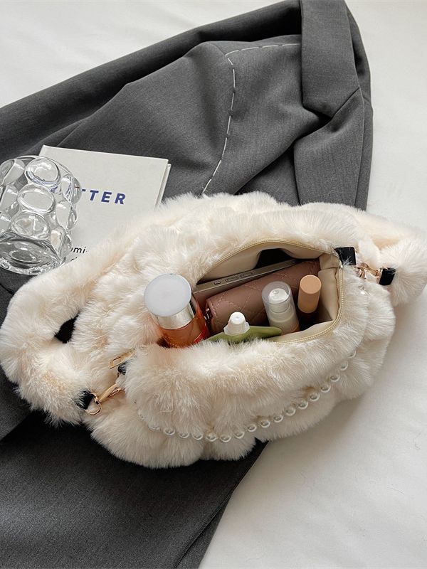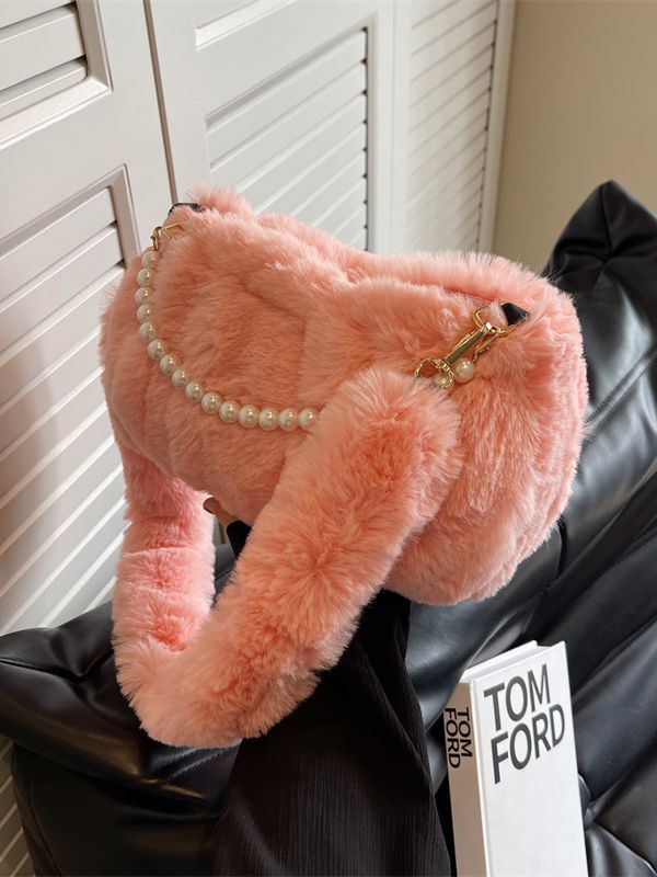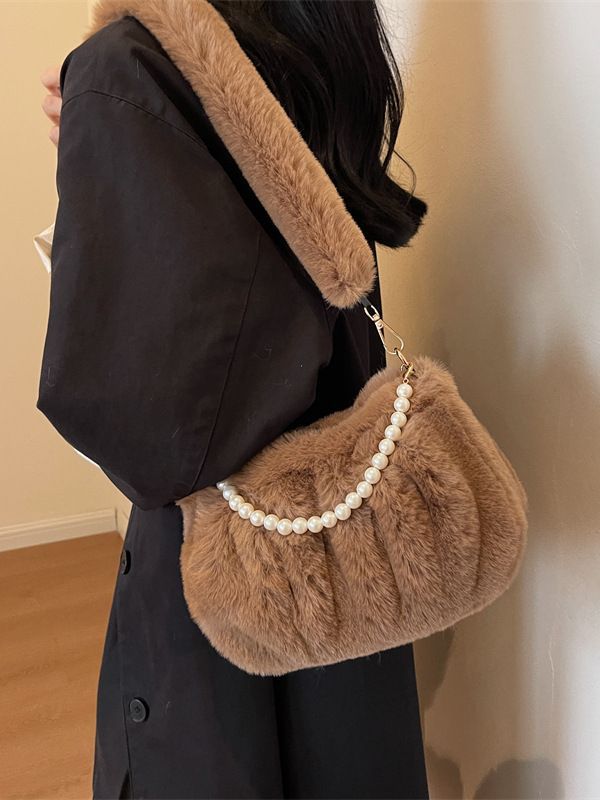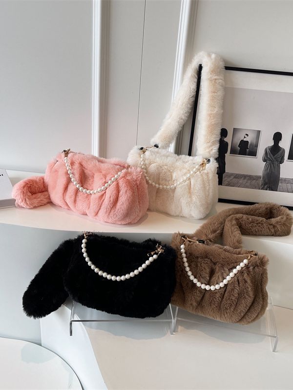 Weiyinxing New Winter Plush Leisure Bag Girls Sweet Pearl Handbag Girls Minority One-Shoulder Armpit Bag