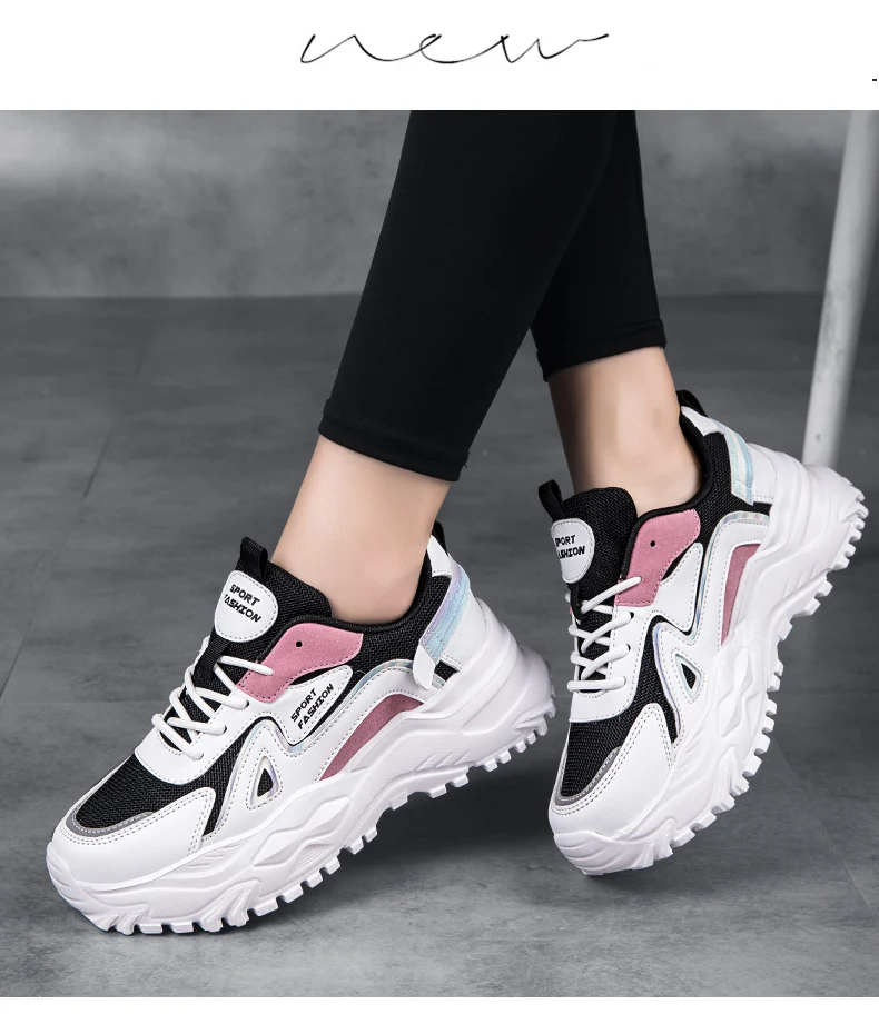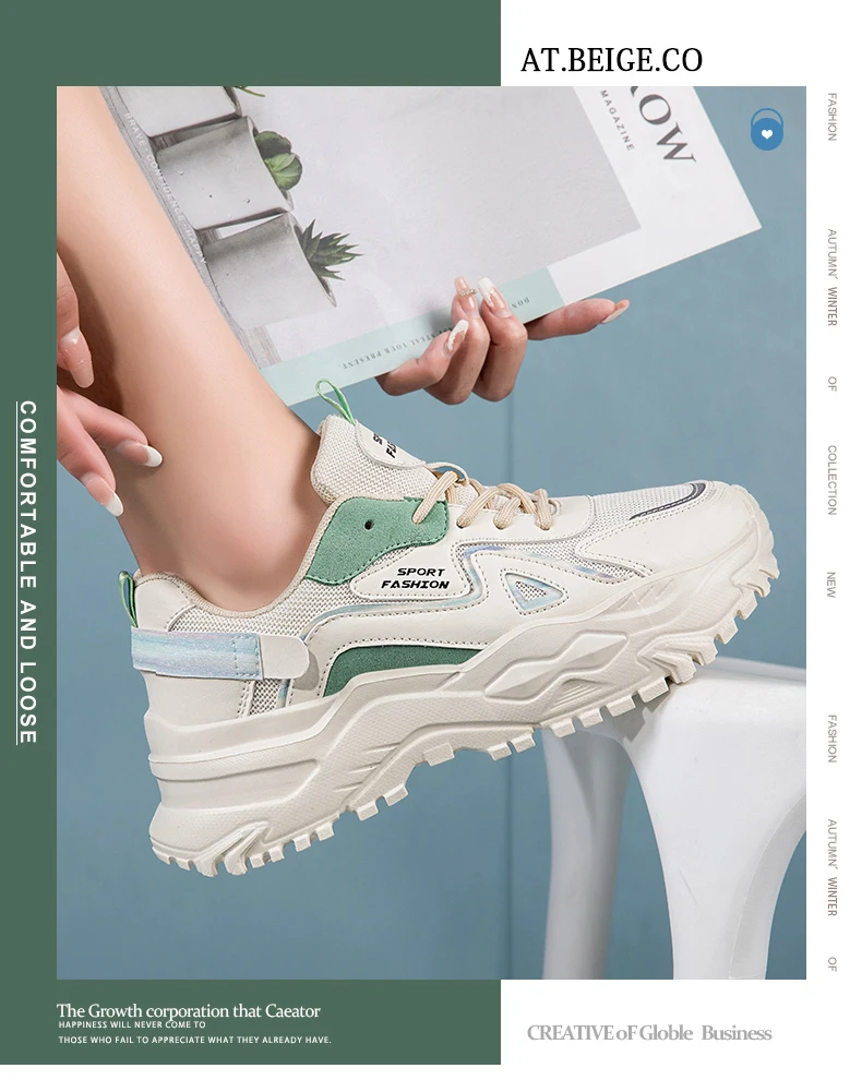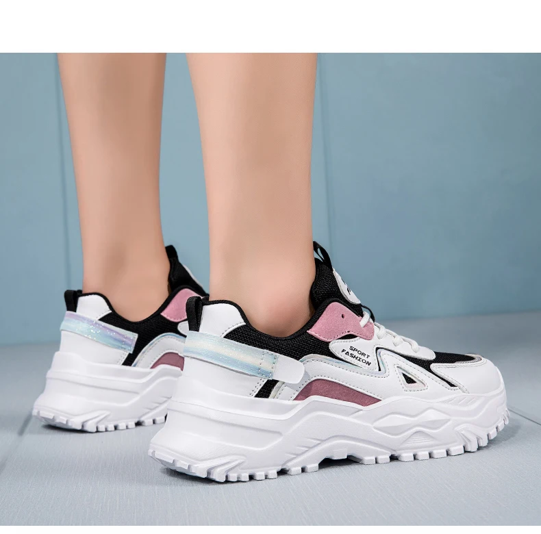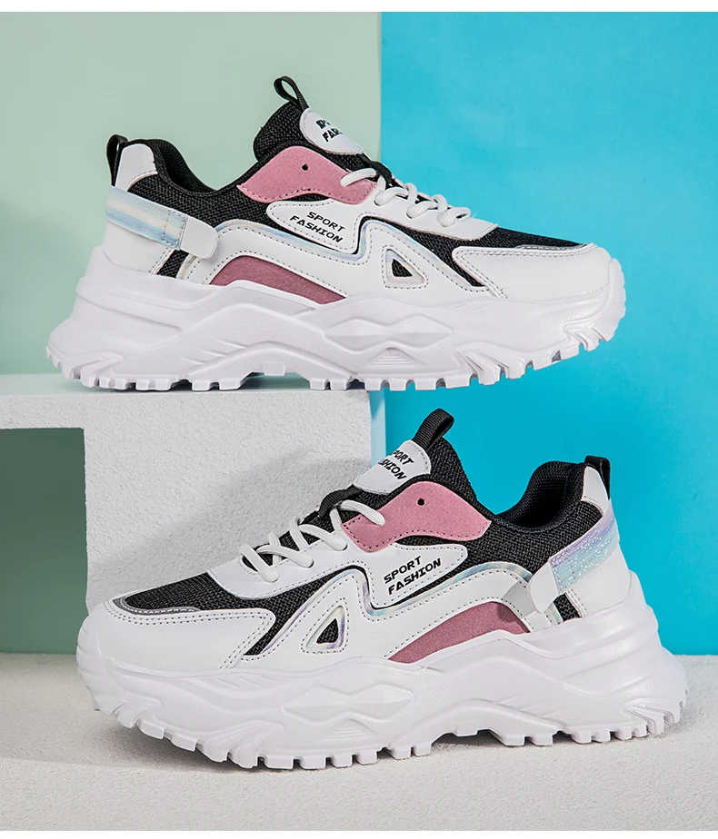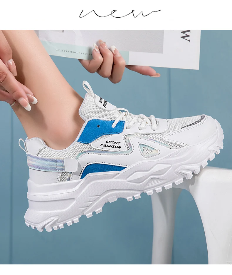 Weiyinxing Platform Daddy Shoes Women White Sport Shoes Platform Chunky Sneakers Women Thick-Soled Patchwork Shoes Casual Running