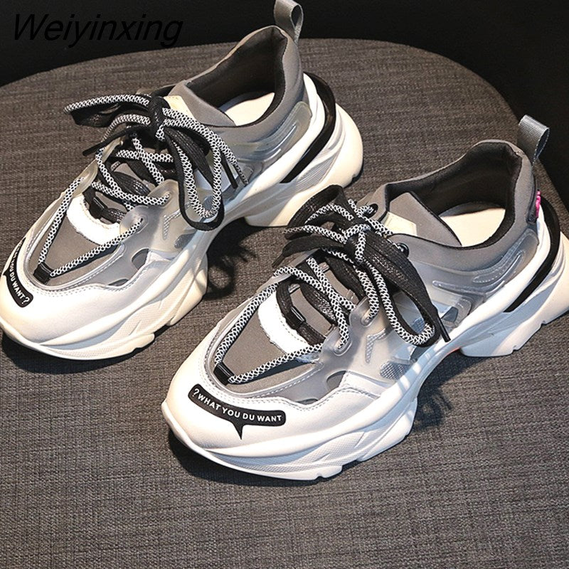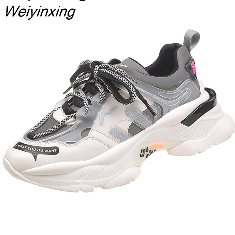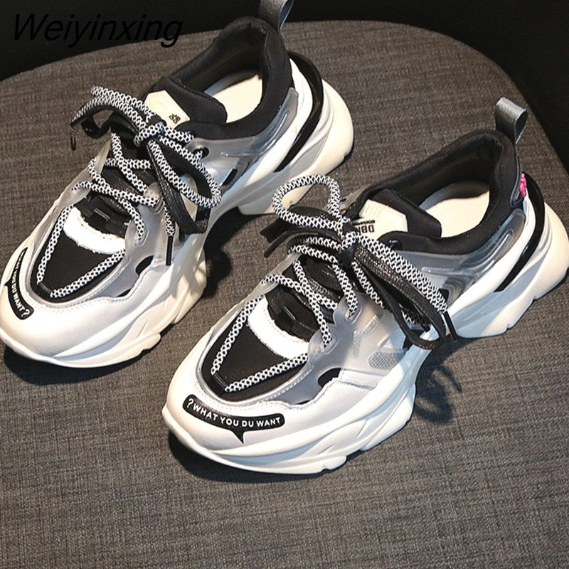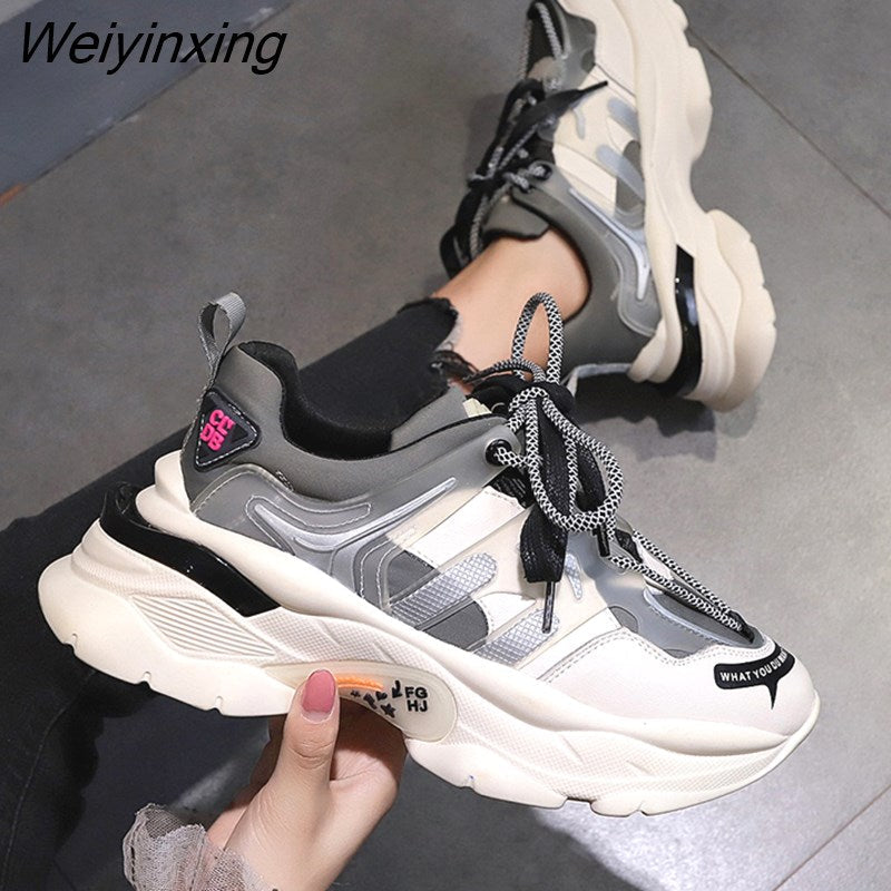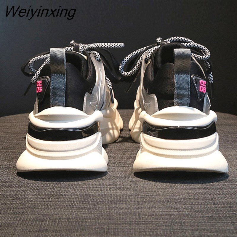 Weiyinxing Platform Sneakers Round Toe 2023 Spring Women's Chunky Shoes Lace Up Black Female Trainers Dad Shoes Tenis Feminino