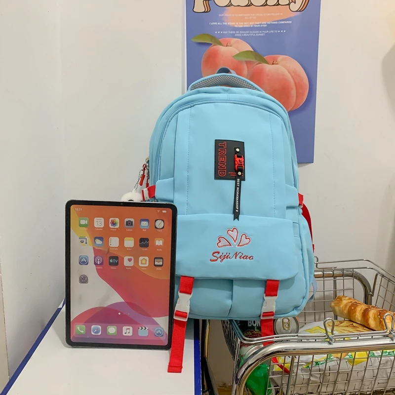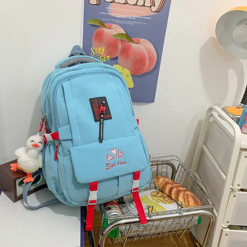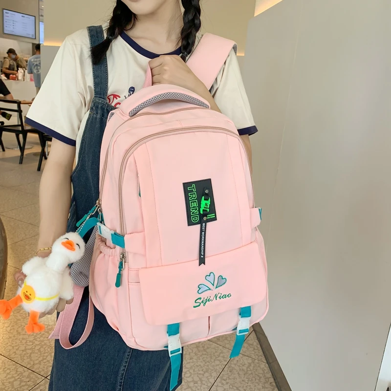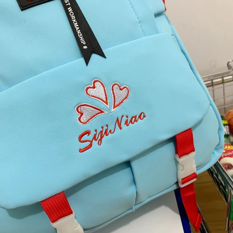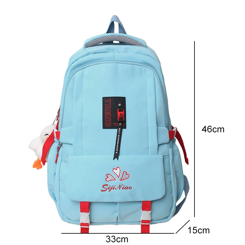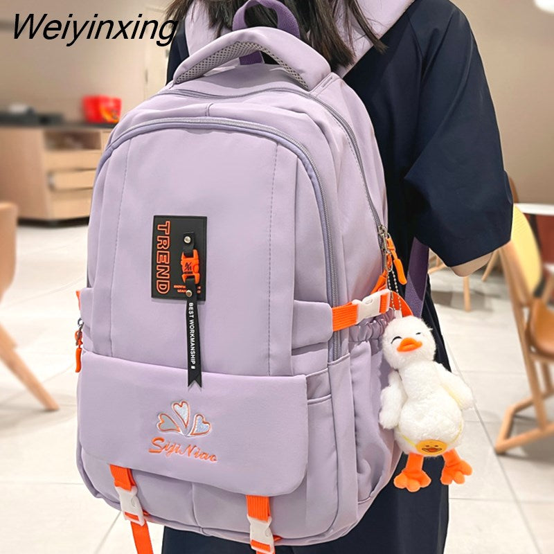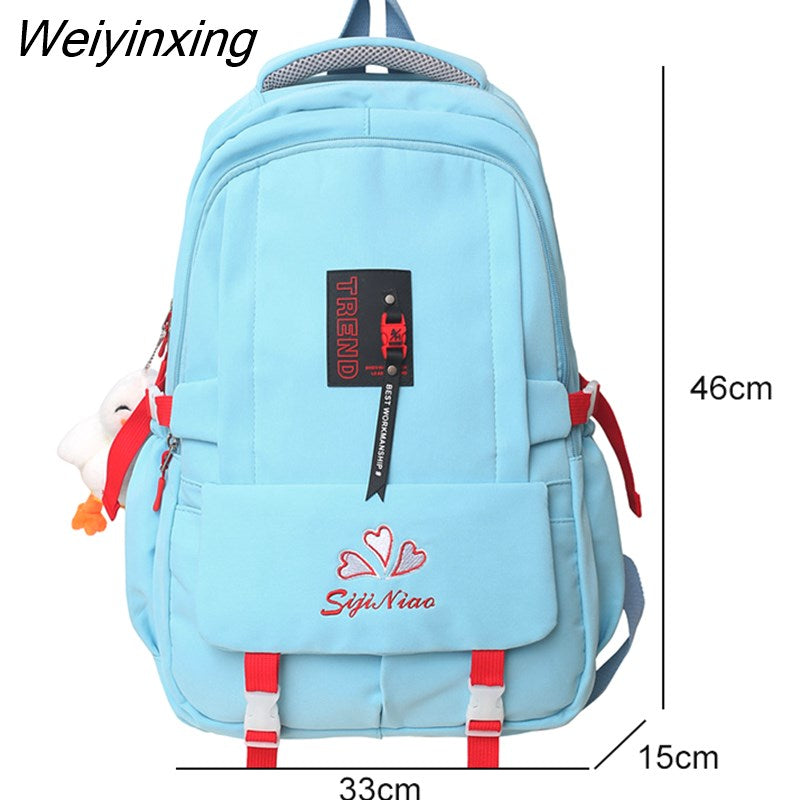 Weiyinxing Pocket Embroidered Waterproof Nylon Women Backpack Female Large Capacity Insert Buckle Travel Bag Teenage Girls Schoolbag