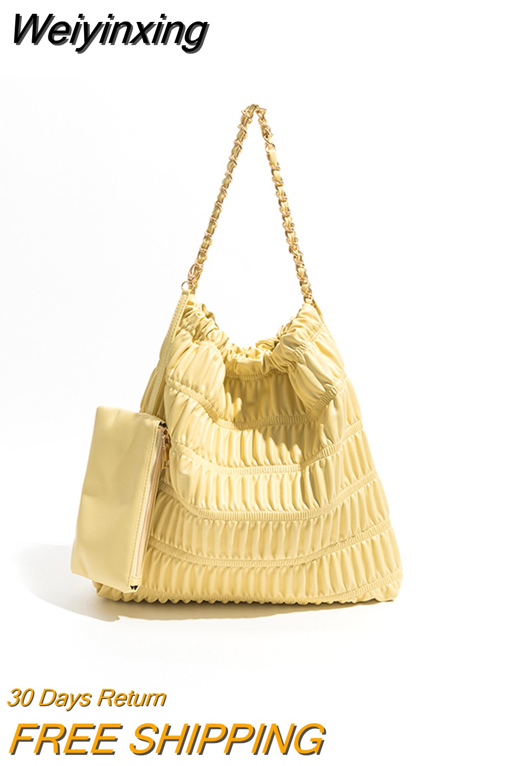 Weiyinxing Ruched Large Capacity Tote Bag Quilted Women Shoulder Bags Drawsting Chains Handbags Luxury Soft Pu Leather Big Purses