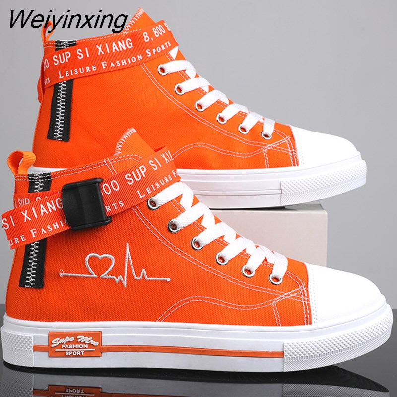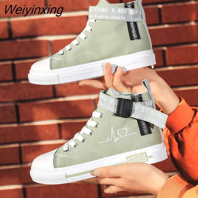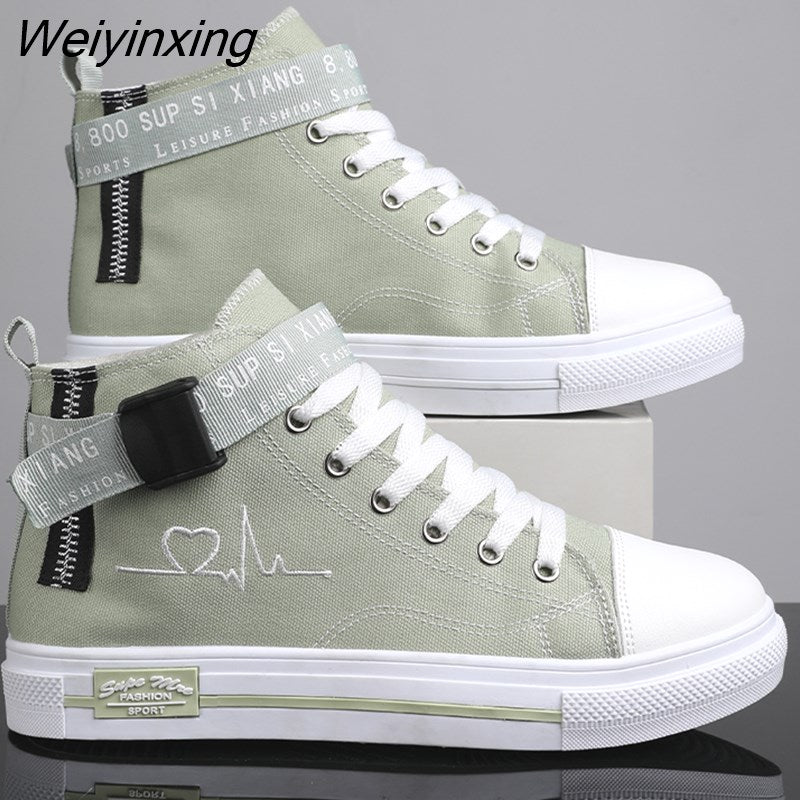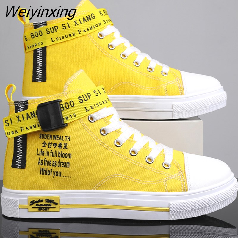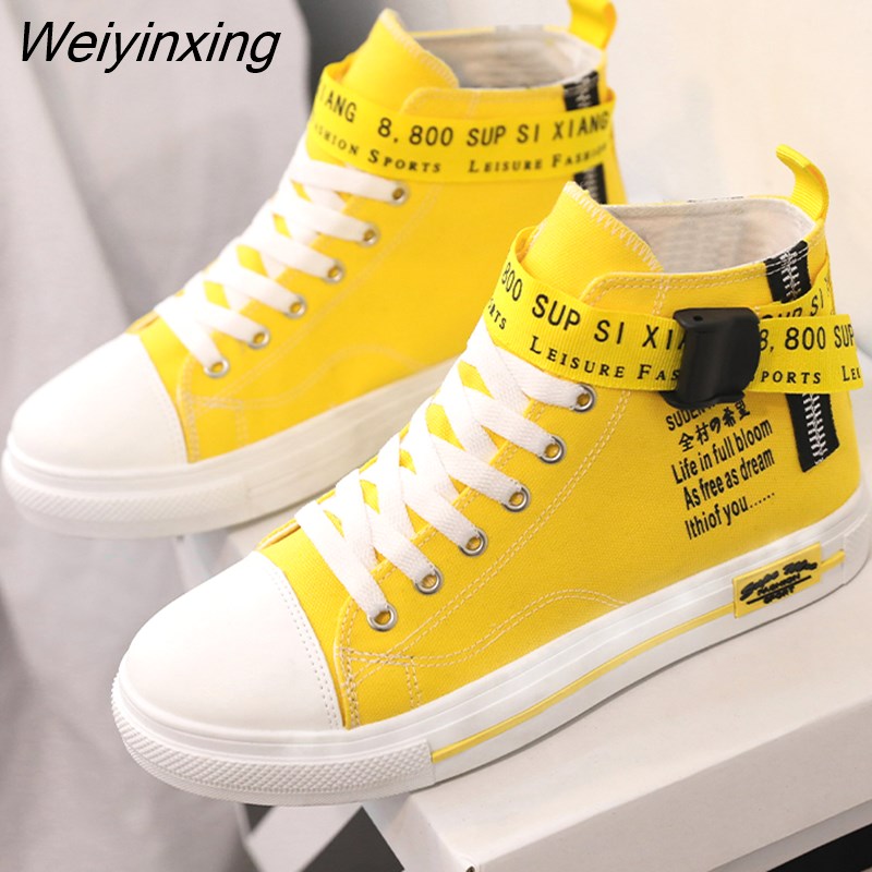 Weiyinxing Sneakers for Women Yellow Vulcanized Shoes Lace-up Casual Canvas Shoes Size 35-44 Breathable High Top Men Walking Shoes