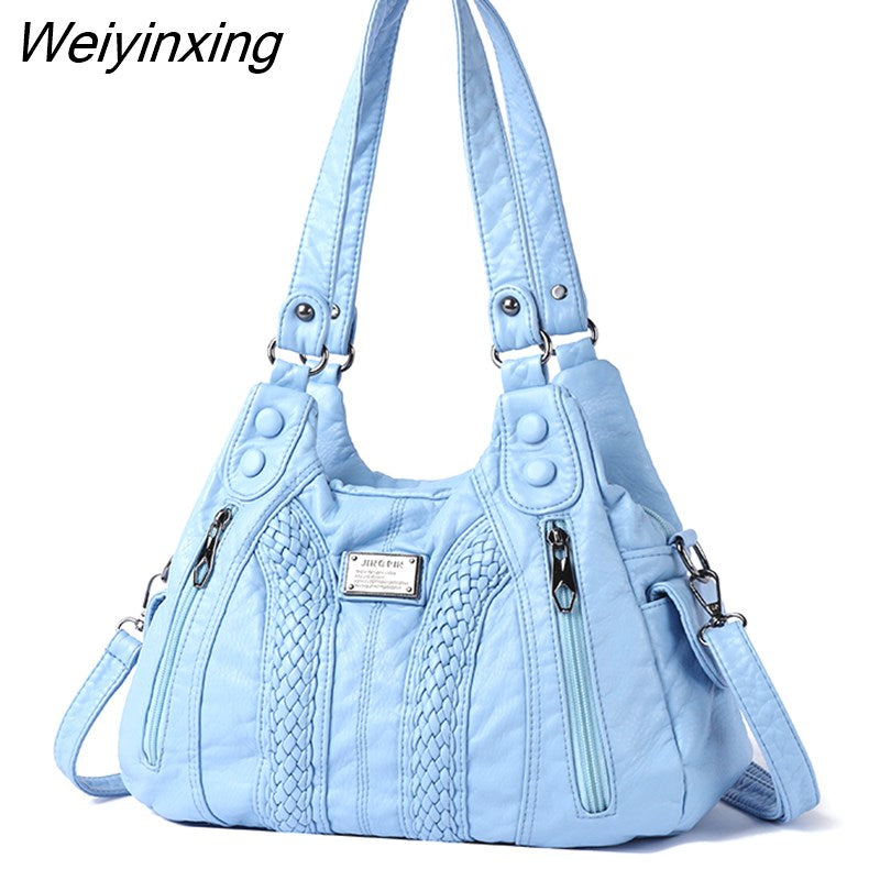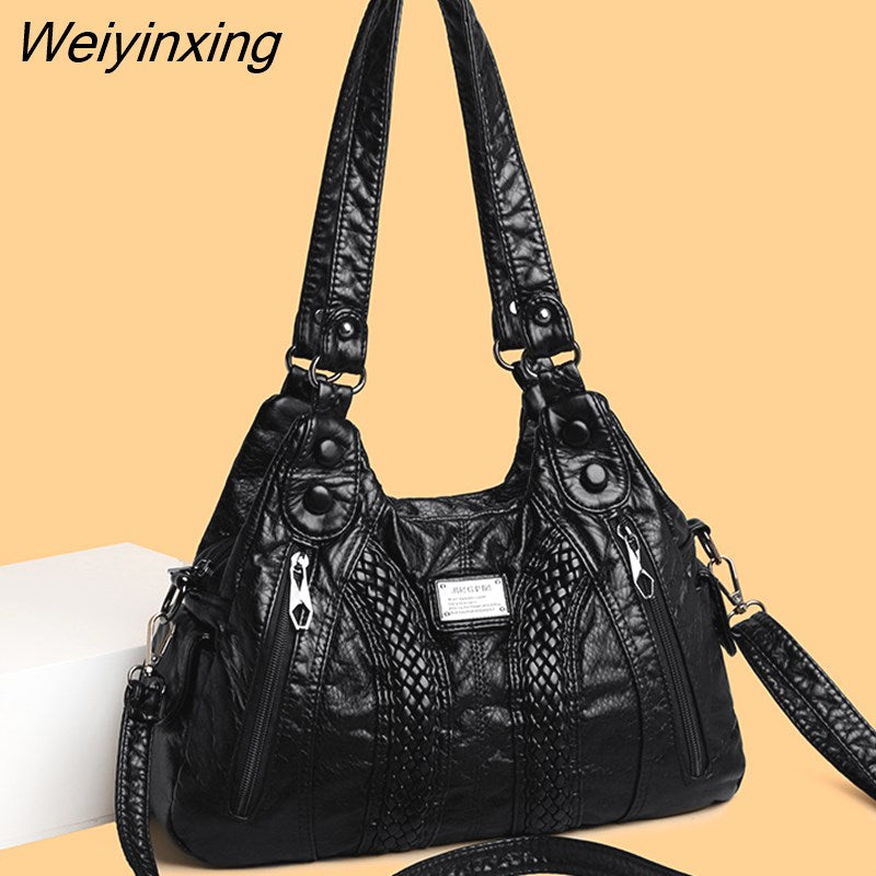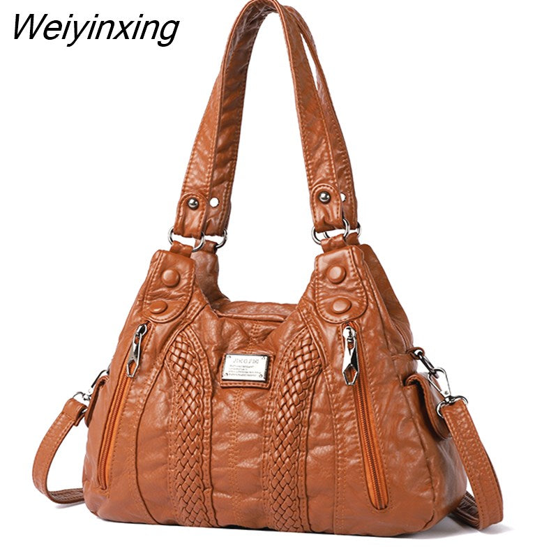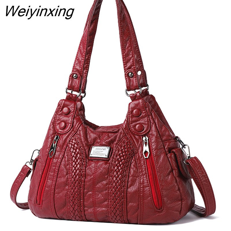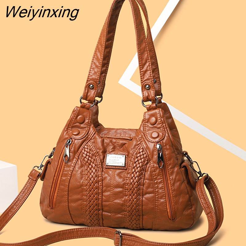 Weiyinxing Soft Washed Pu Leather Shoulder Crossbody Bag for Women 2023 Fashion Ladies Purses and Handbags Female Travel Totes Sac