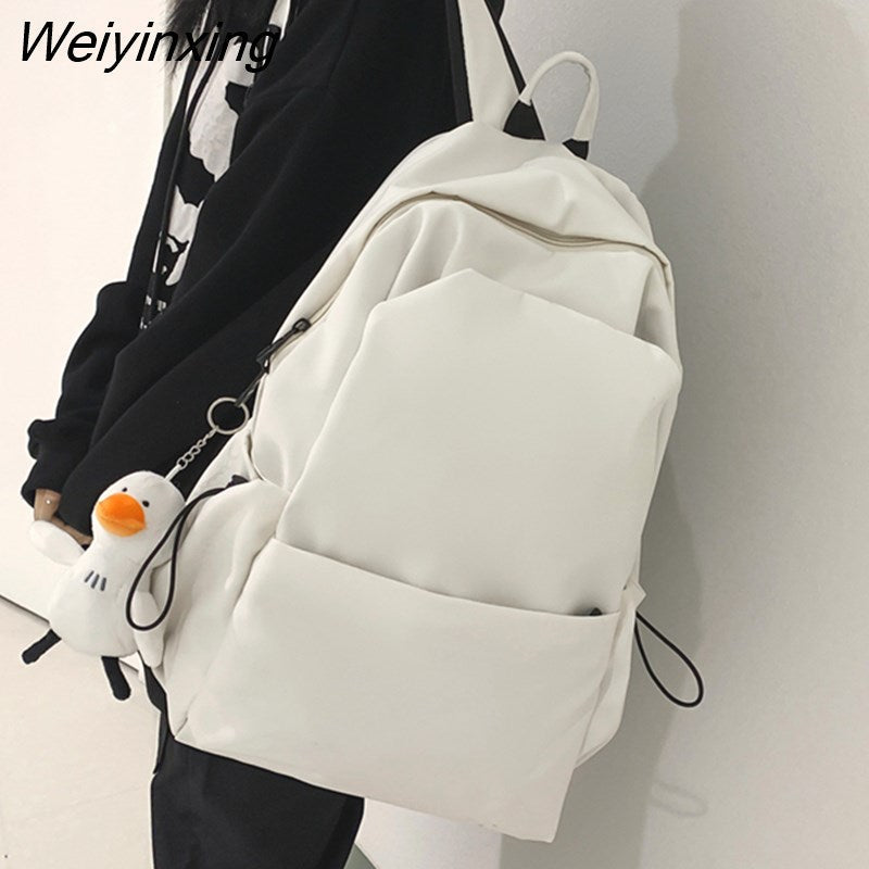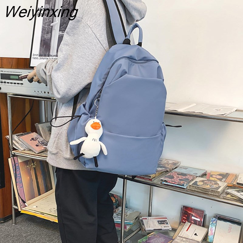 Weiyinxing Solid Color College Student Schoolbag Large Capacity Washing Women Backpack Simple Fashion Teenage Girl Backpacks Cute Bag