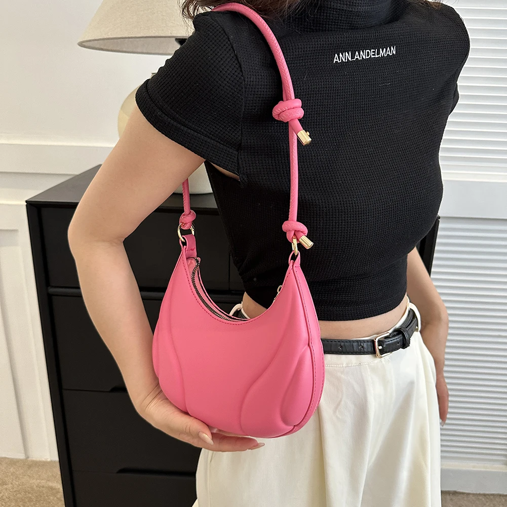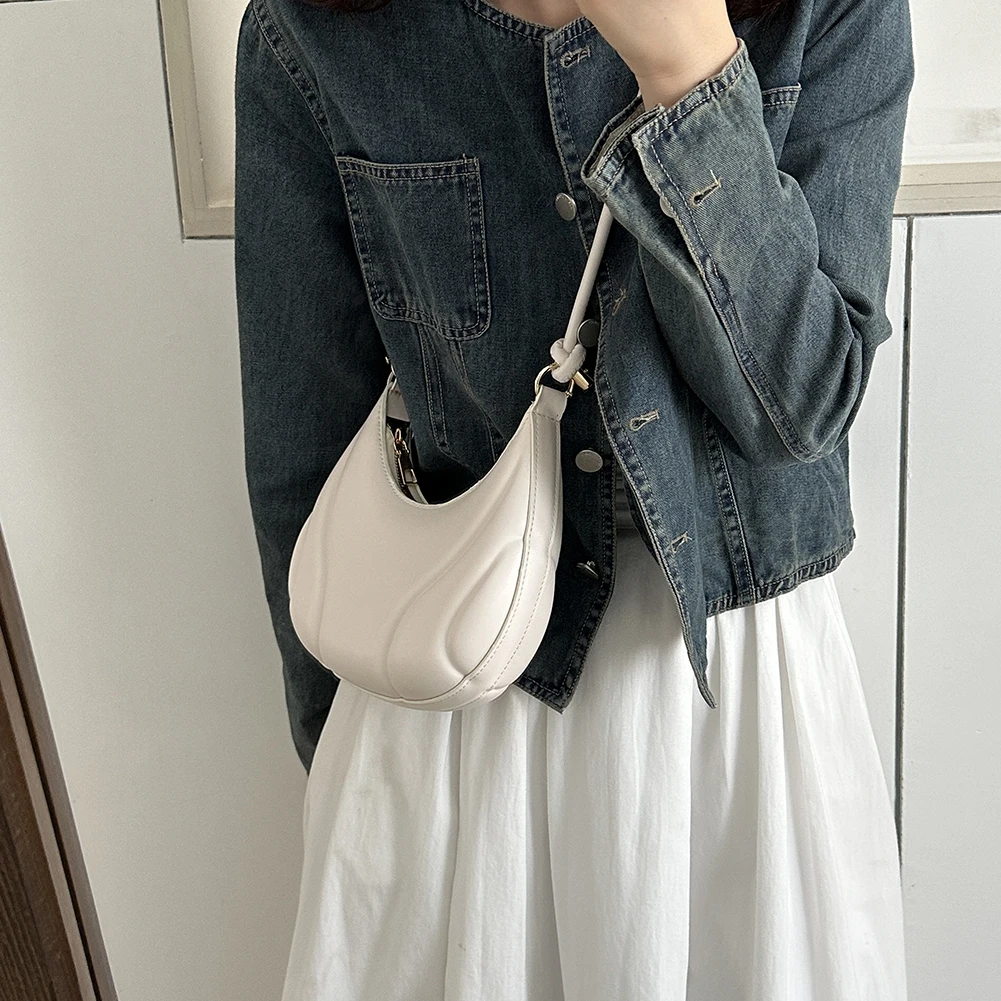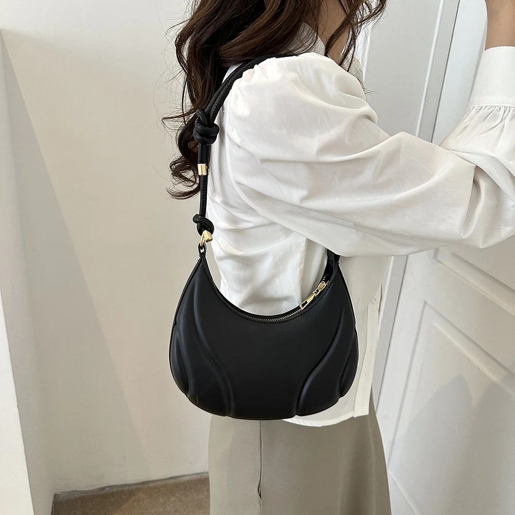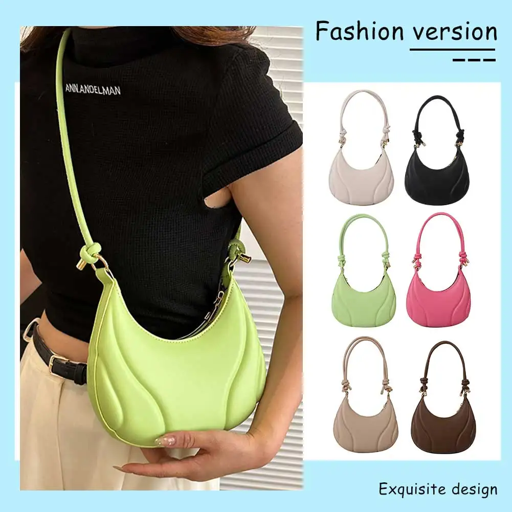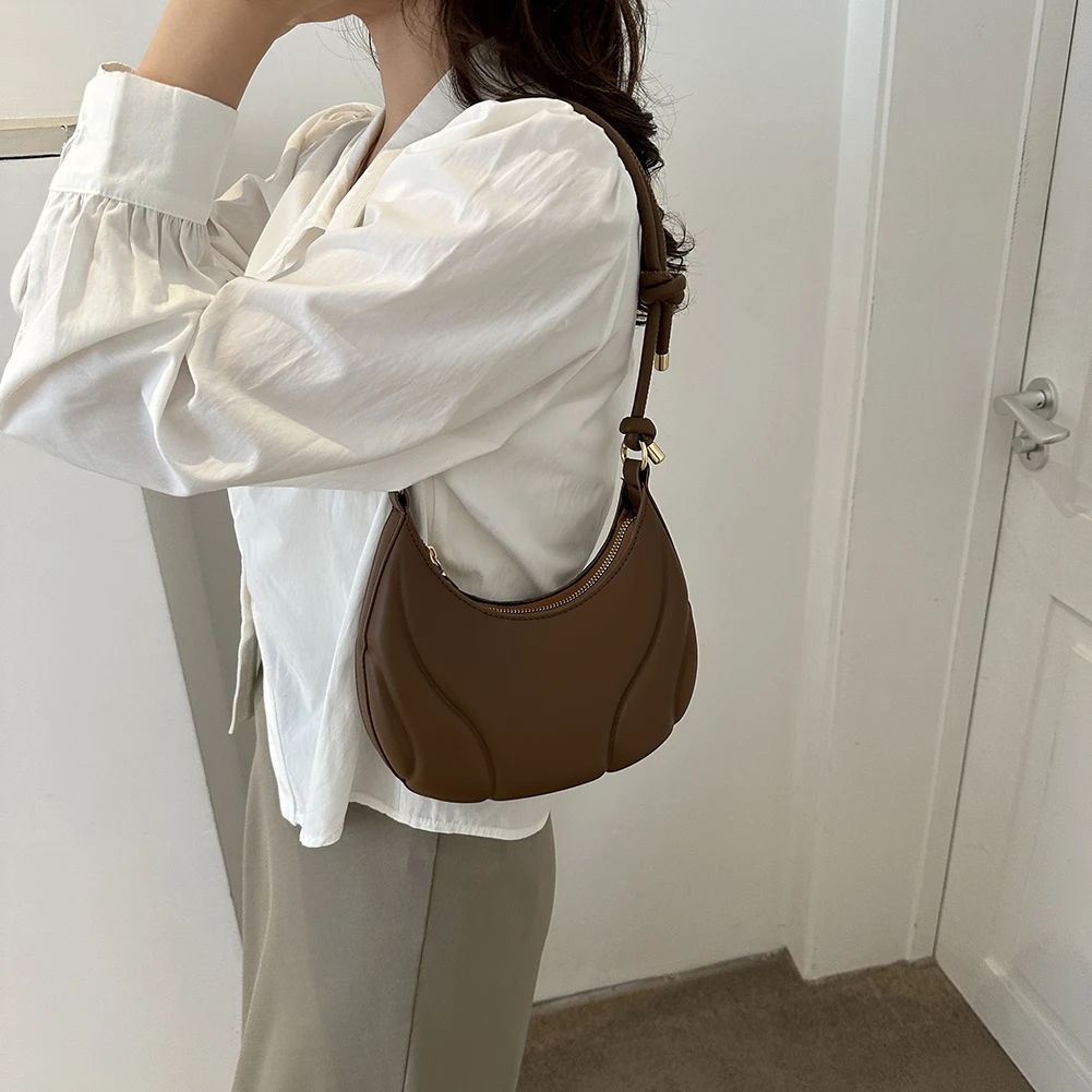 Weiyinxing Solid Color Saddle Bag High Quality Leather Shoulder Bags for Women Y2K Simple Ladies Crossbody Bag Designer Hobos Handbag