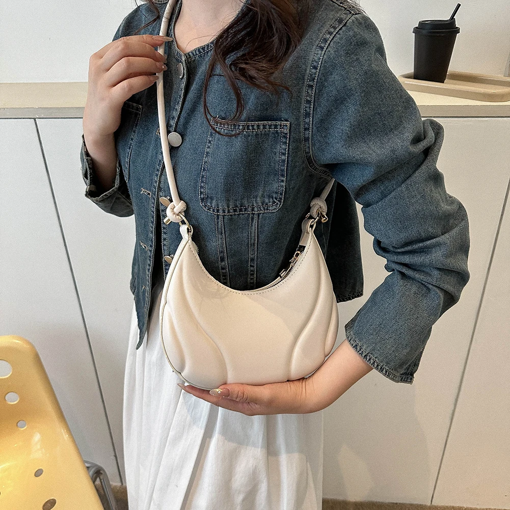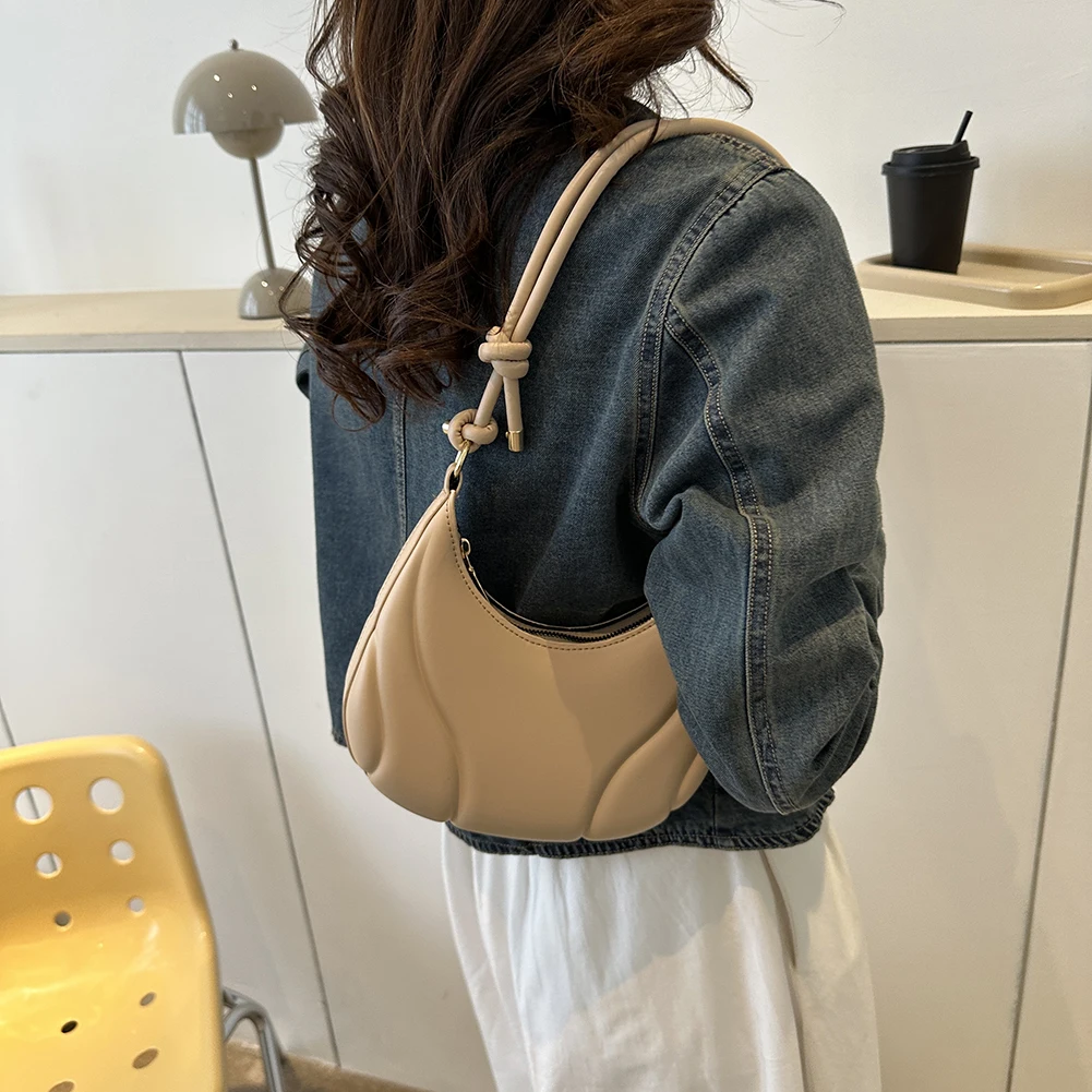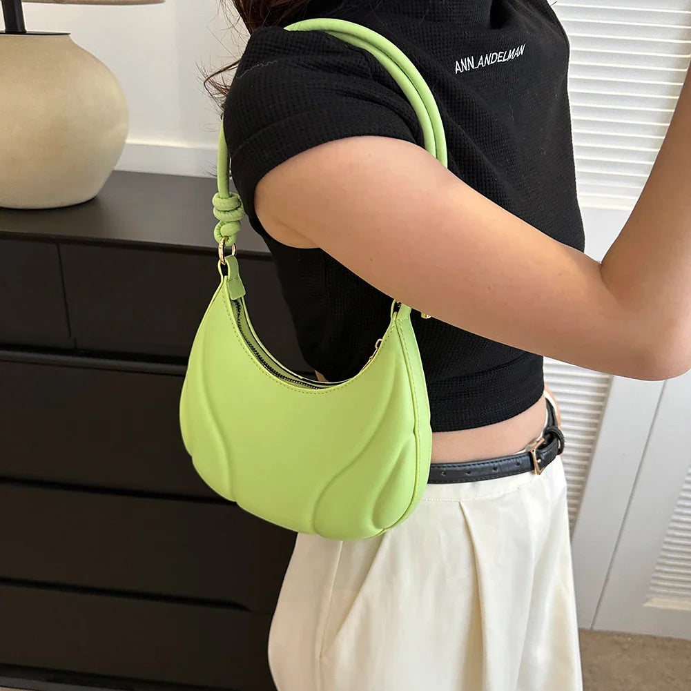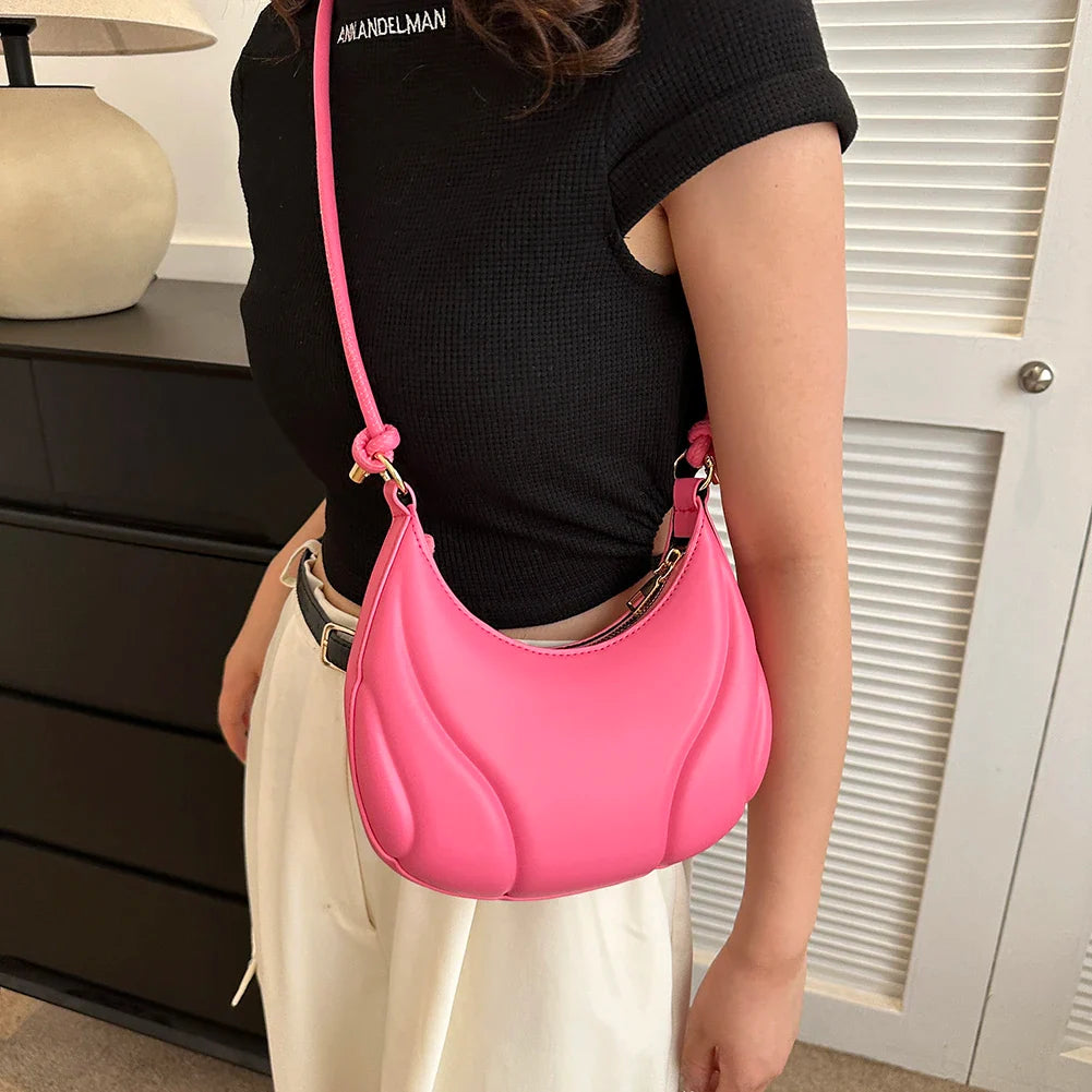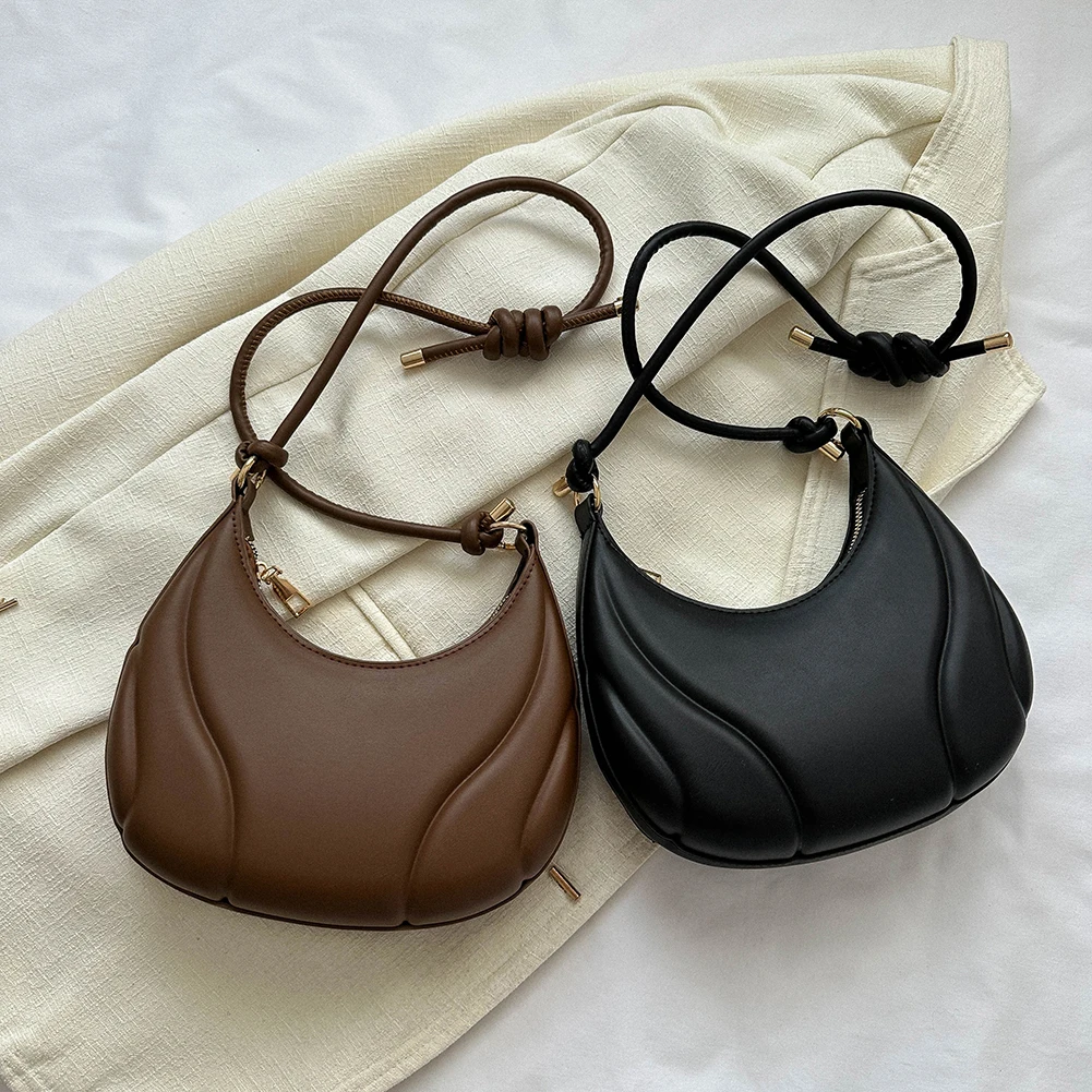 Weiyinxing Solid Color Saddle Bag High Quality Leather Shoulder Bags for Women Y2K Simple Ladies Crossbody Bag Designer Hobos Handbag