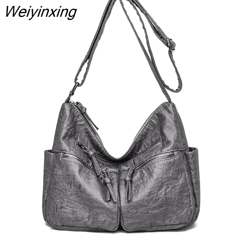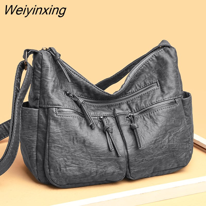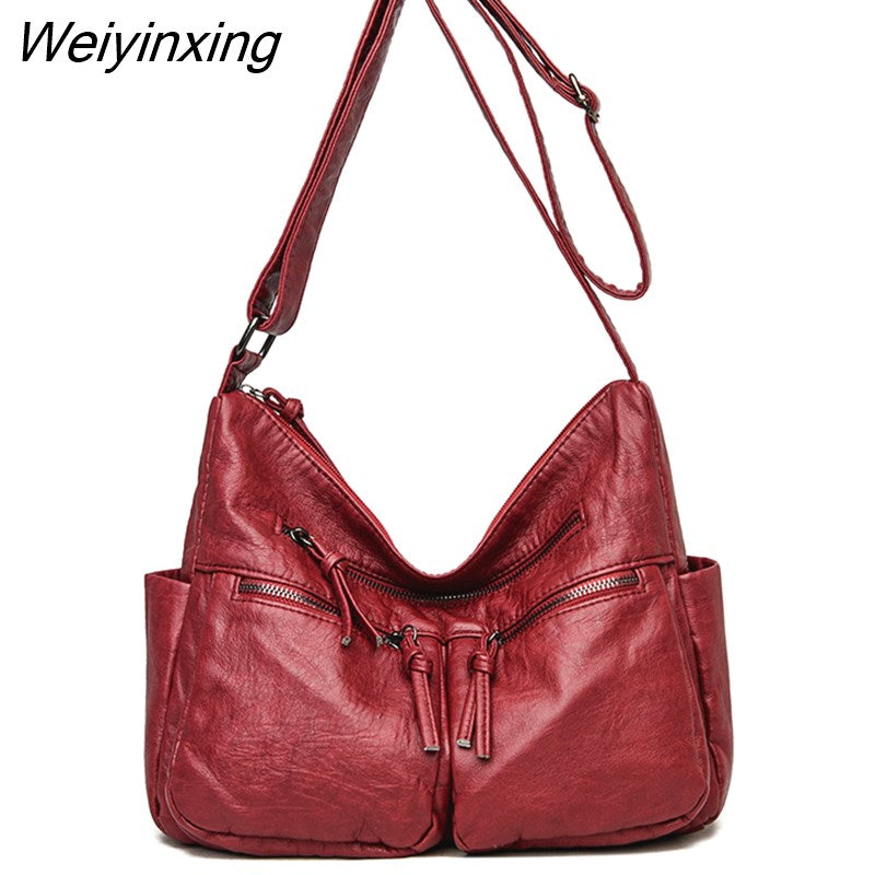 Weiyinxing Solid Color Soft Leather Shoulder Bags for Women Designer Large Capacity Handbags Women Bags Fashion Female Crossbody Sac