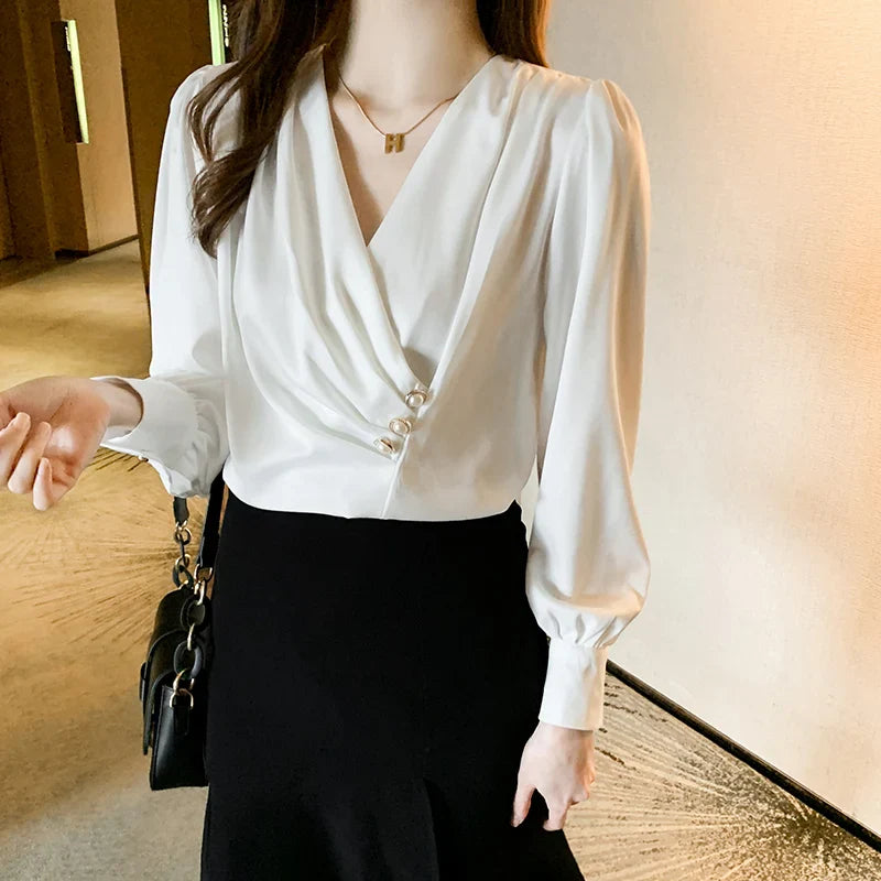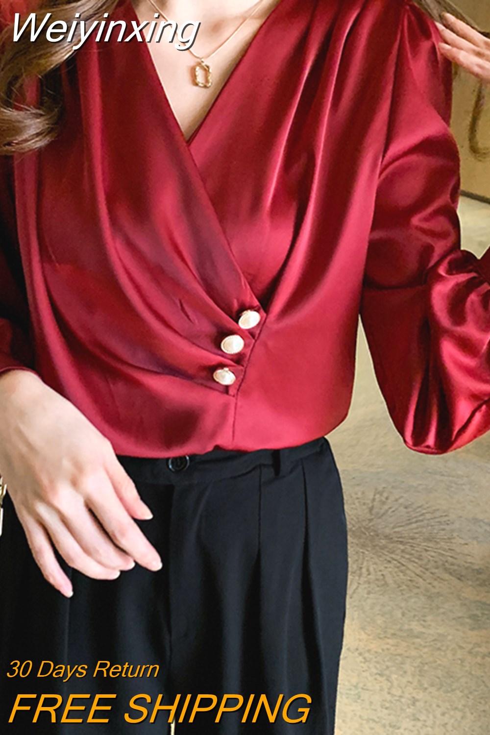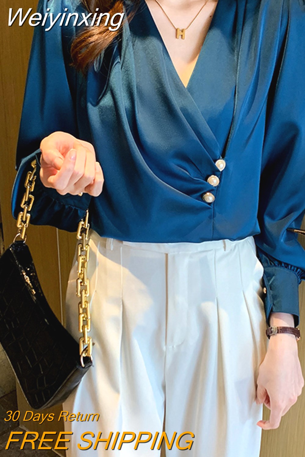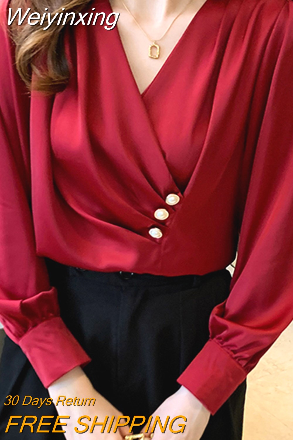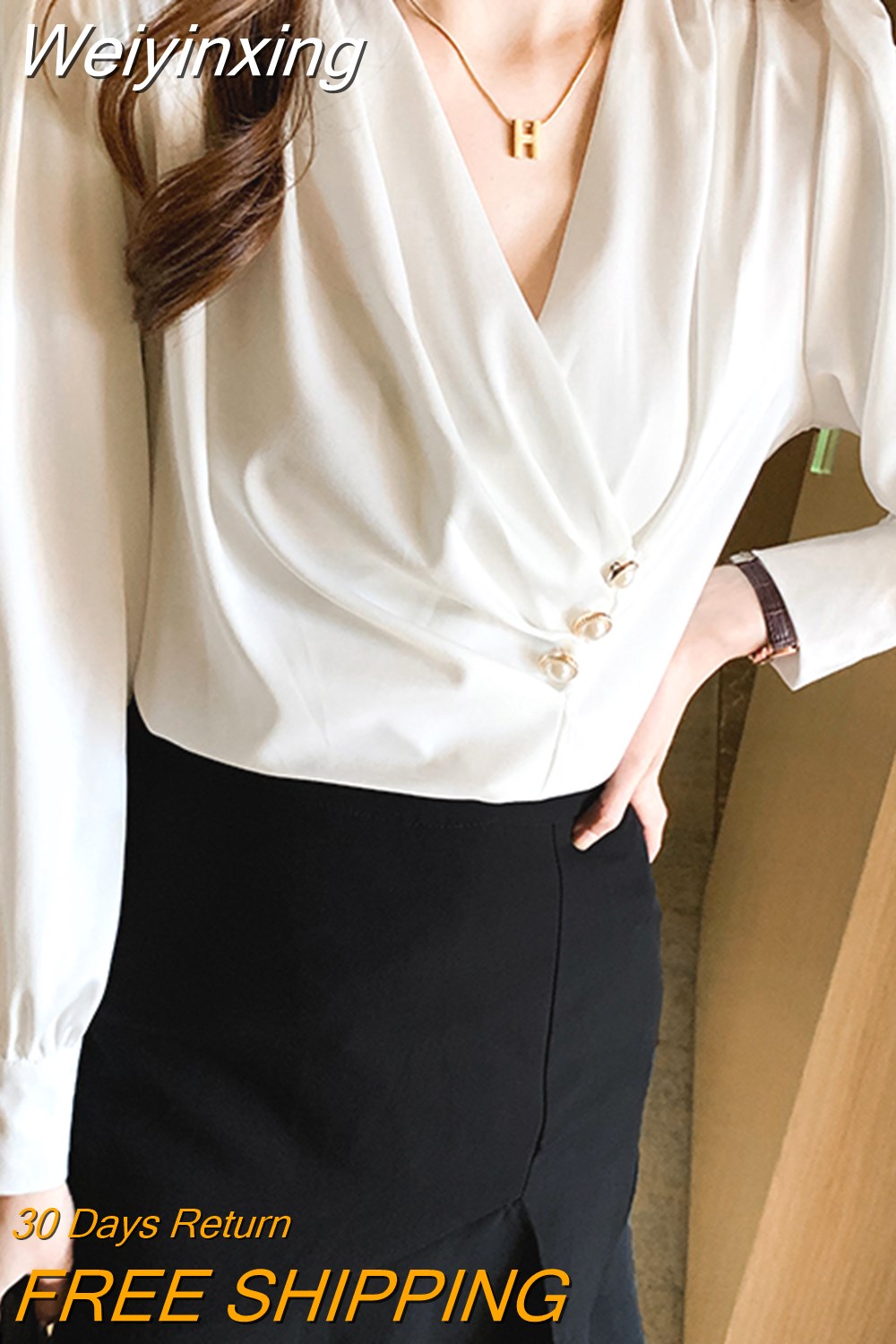 Weiyinxing Solid Office Lady V-Neck Chiffon Blouse Shirt Women Tops Blusas Mujer De Moda 2023 Long Sleeve Blouse Women Blusa G934