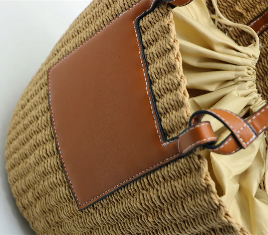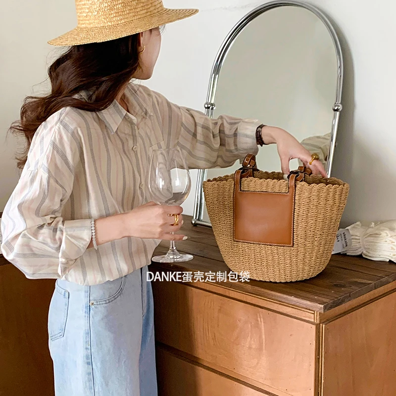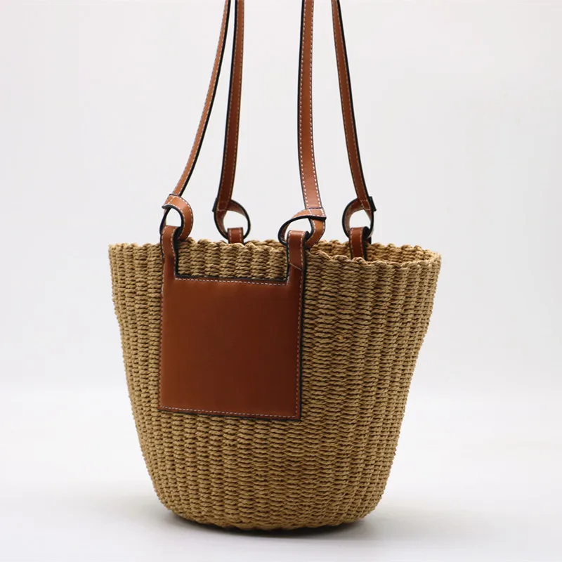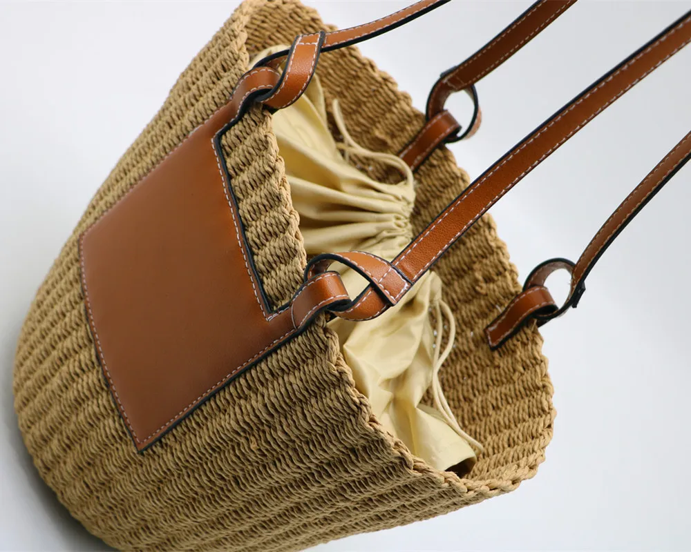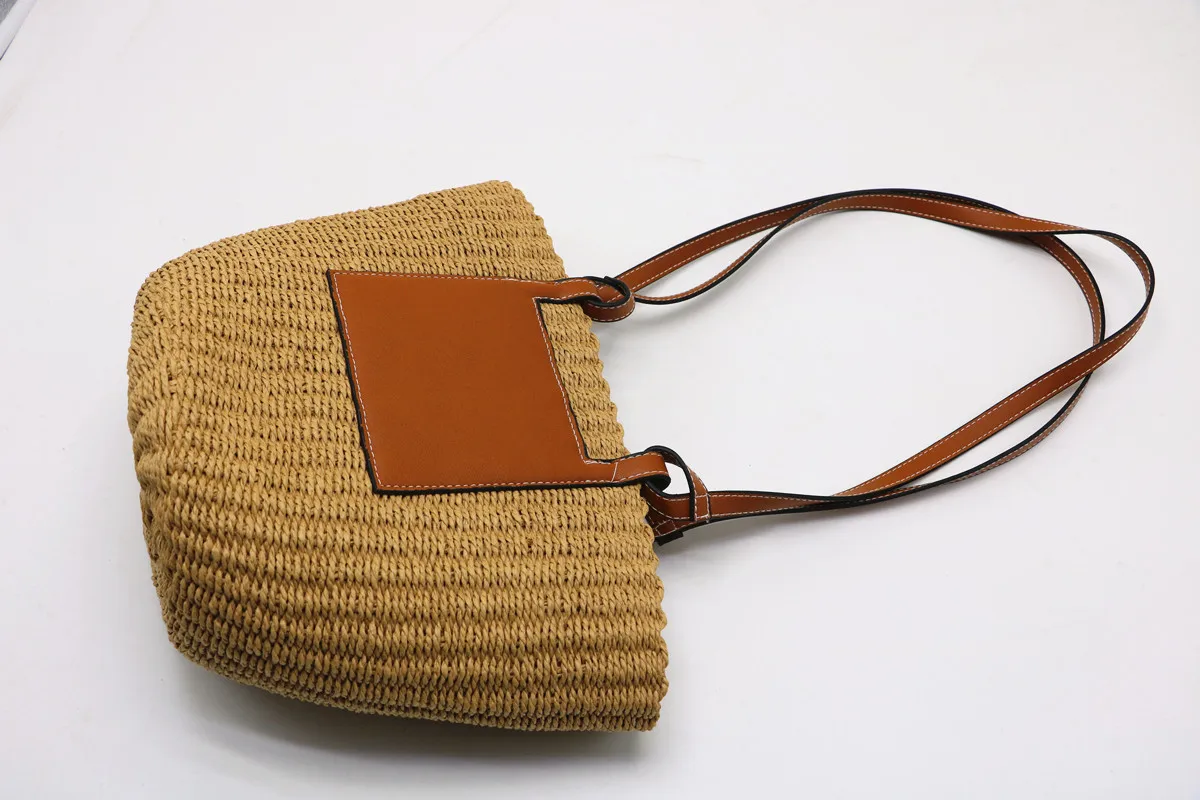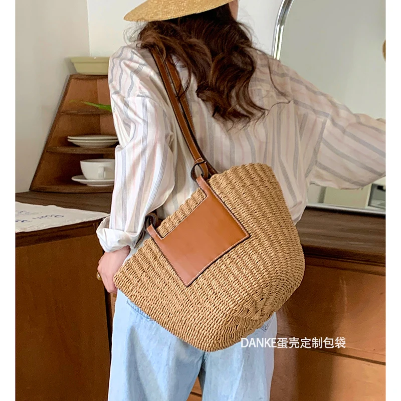 weiyinxing Straw Basket Bags Designer Rope Woven Women Shoulder Bags Summer Beach Crossbody Bag Pu Leather Patchwork Large Tote Sac