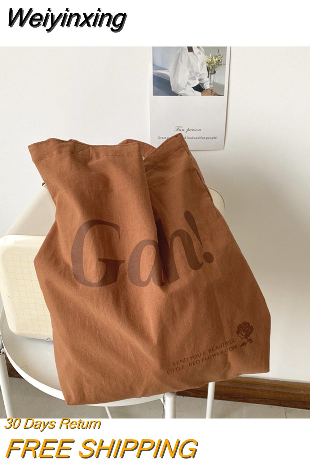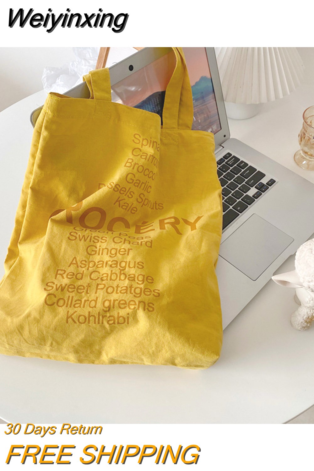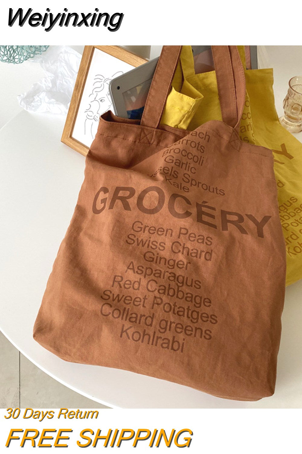 Weiyinxing Student Girls Thin Canvas Shoulder Bag Summer Women Travel Beach Handbag Large Capacity Ladies Cloth Grocery Shopping Bags