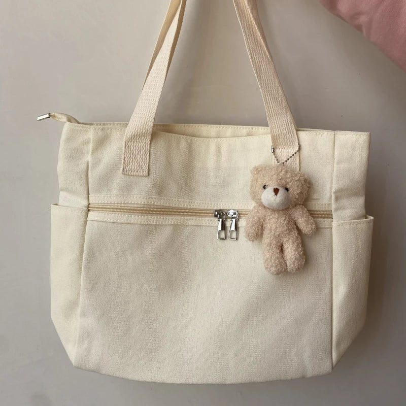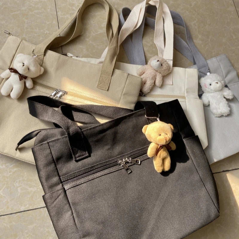Weiyinxing Unisex Large Capacity Shoulder Bag Artistic Youth Solid Tote Bag Versatile Preppy Style Double Zipper Canvas Student Bag