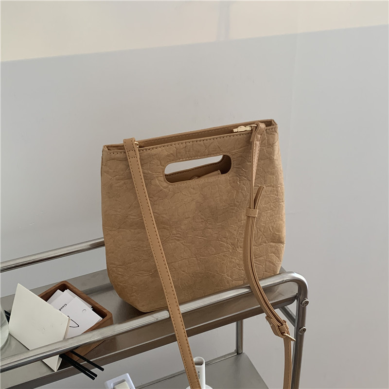 Weiyinxing Woman 2024 New Minority One-Shoulder Oblique Kraft Paper Handbag Small Cute Small Square Bag Retro