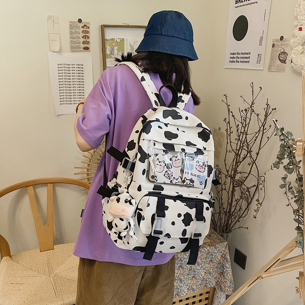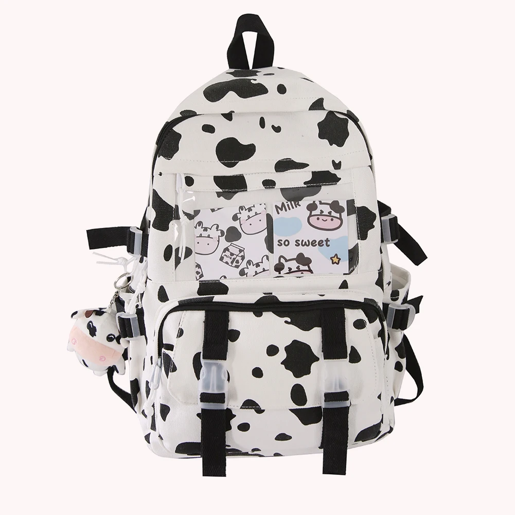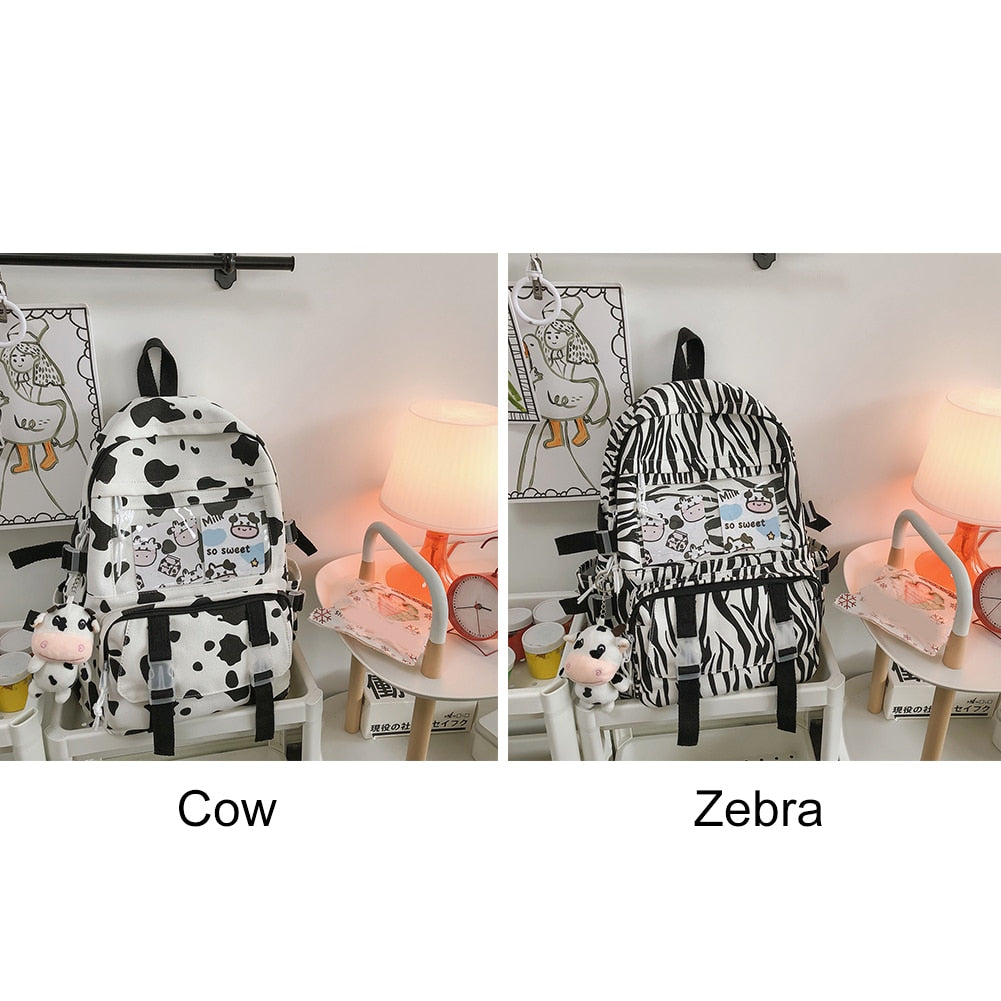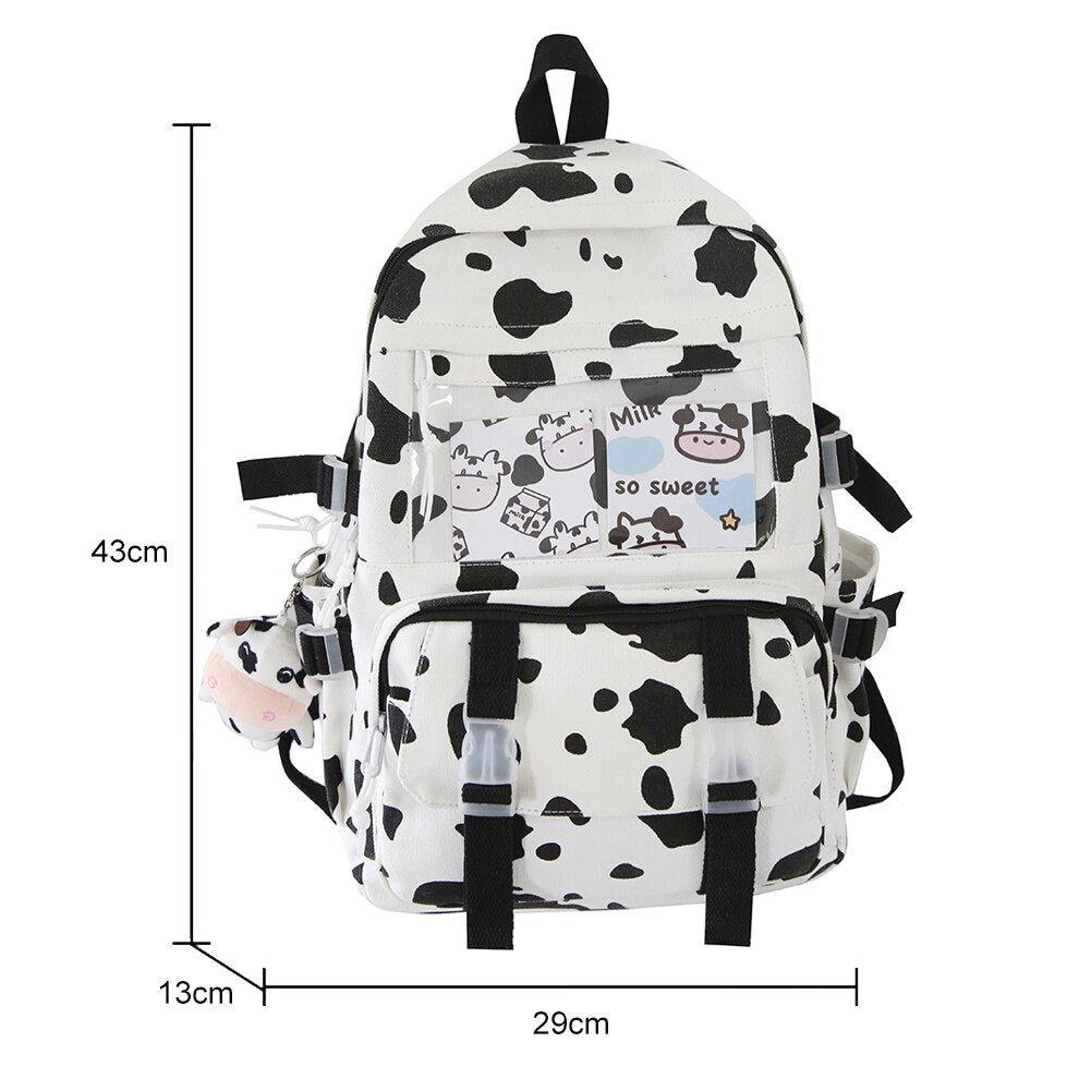 Weiyinxing Women Backpacks Female Cow Printing Funny Student Knapsack Large Capacity Cute Pendant for College for Ladies Girl