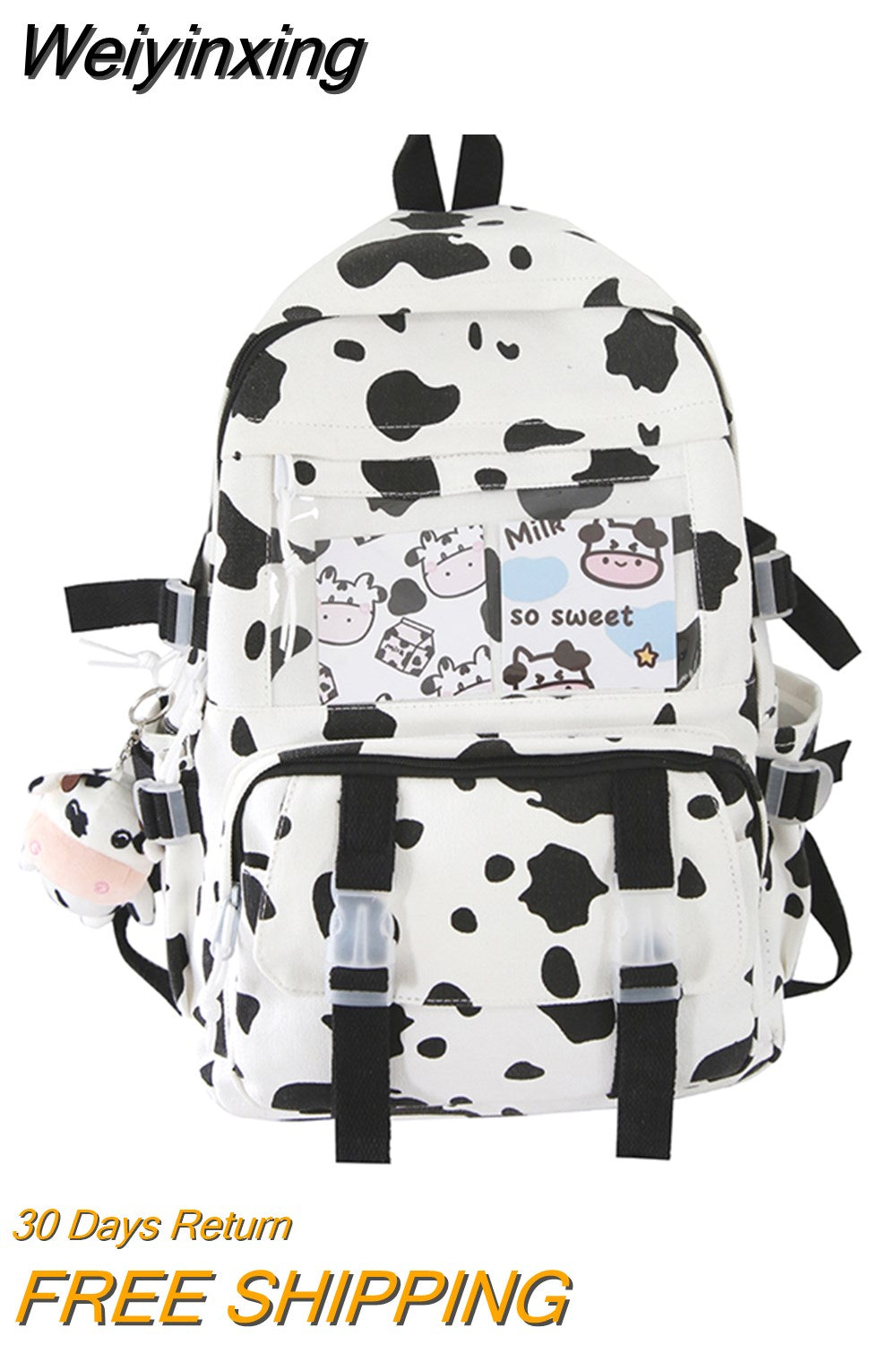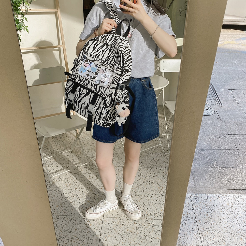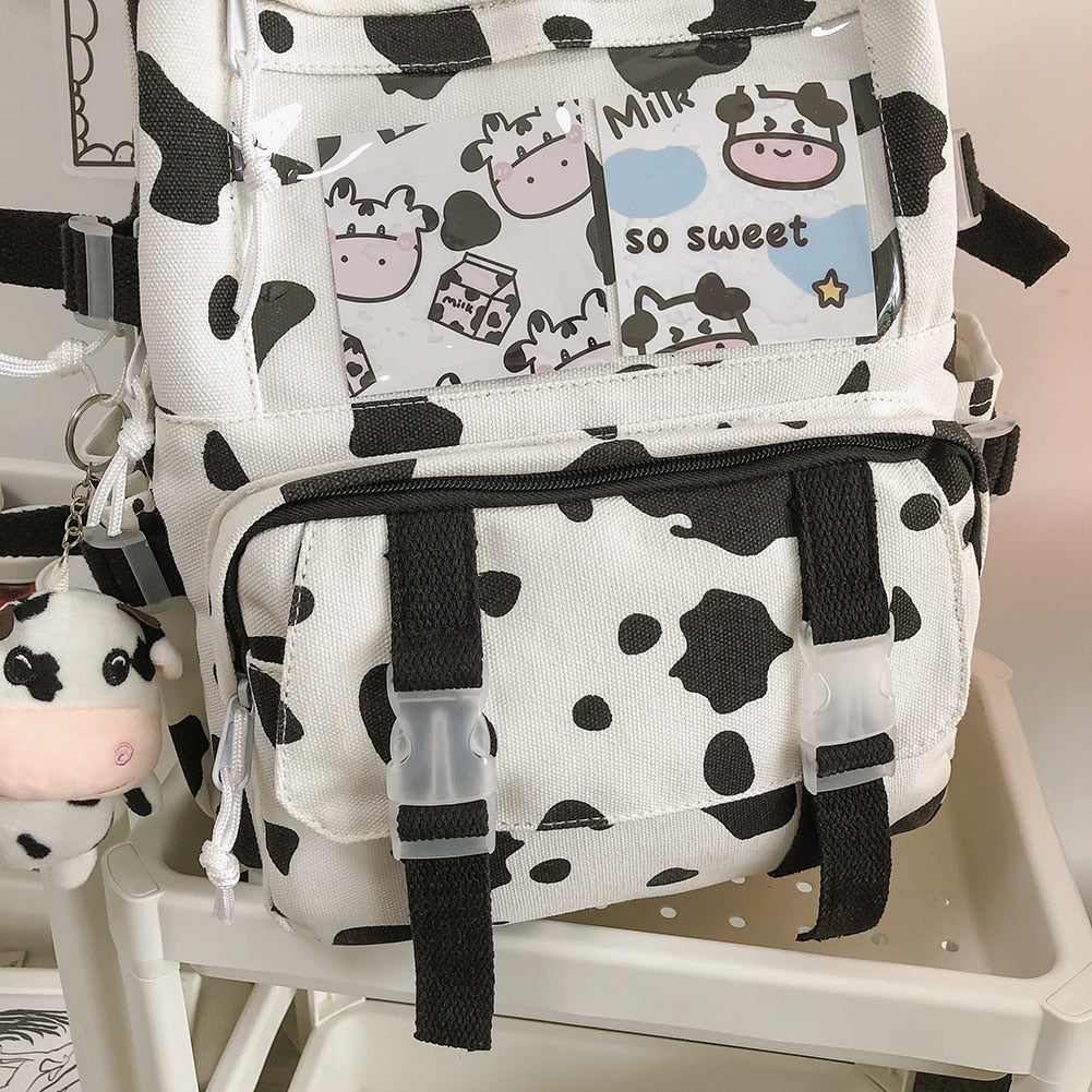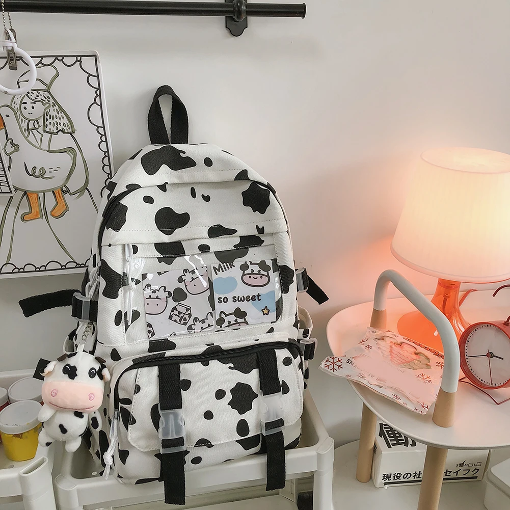 Weiyinxing Women Backpacks Female Cow Printing Funny Student Knapsack Large Capacity Cute Pendant for College for Ladies Girl