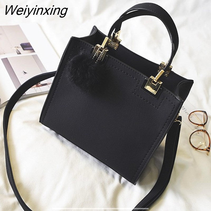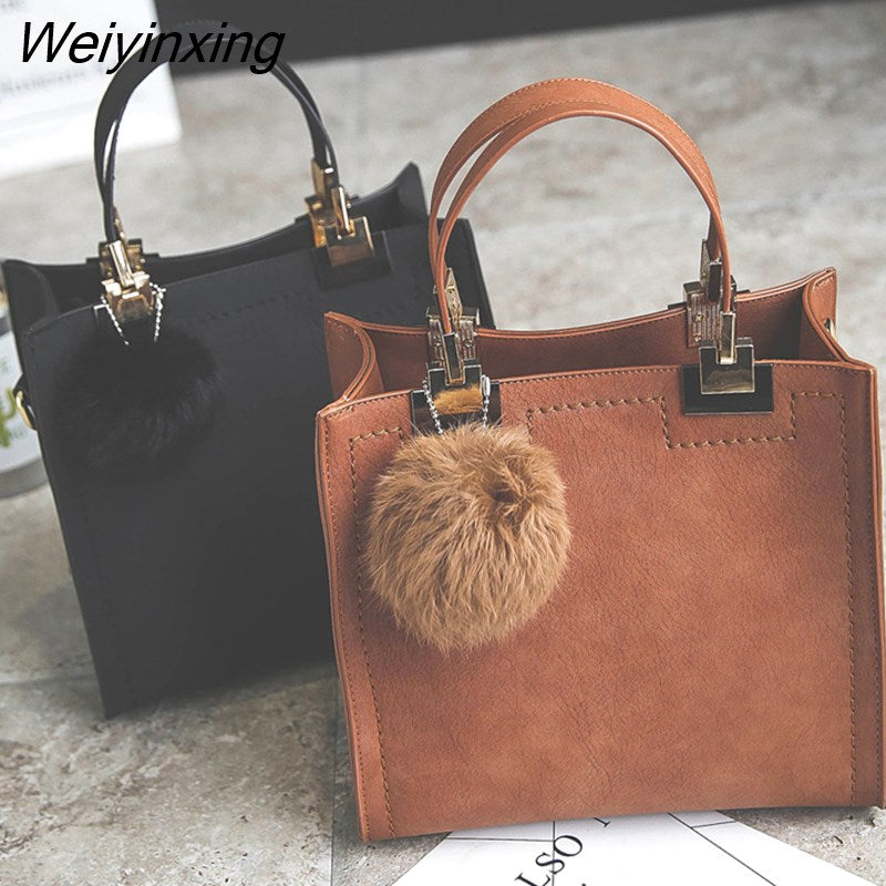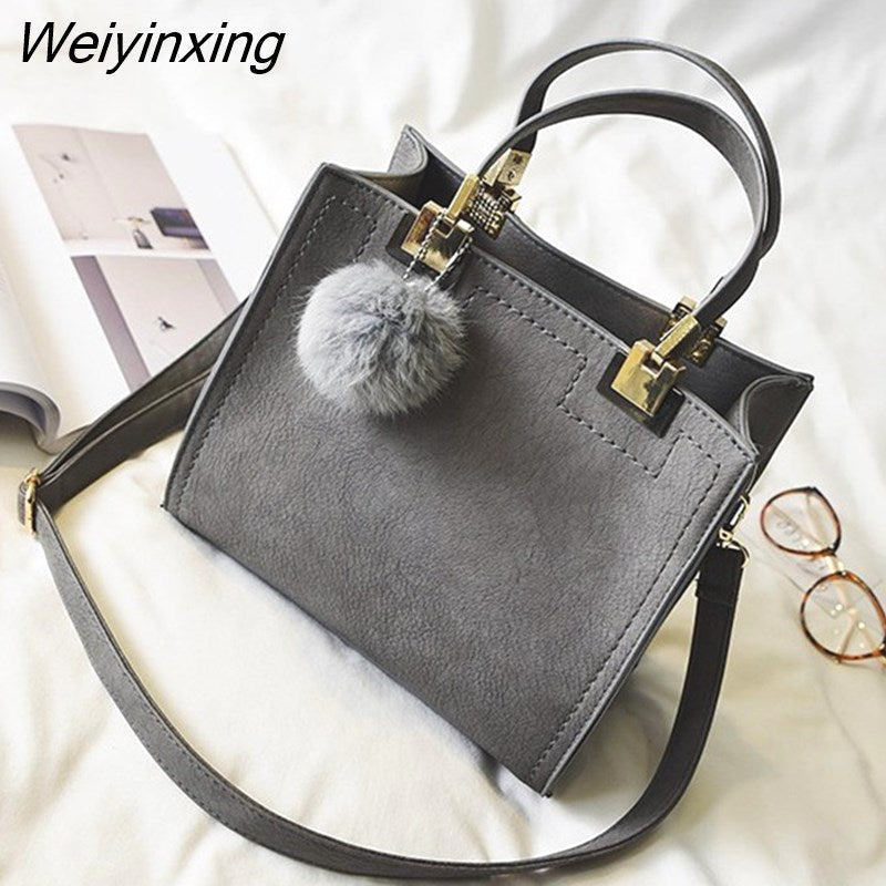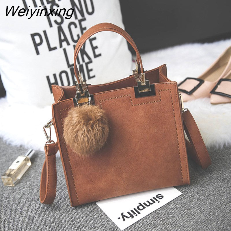 Weiyinxing Women Bag Fashion Messenger Bag Handbag Casual Tote Bag Female Large Shoulder High Quality Suede Leather Handbag With Fur Ball