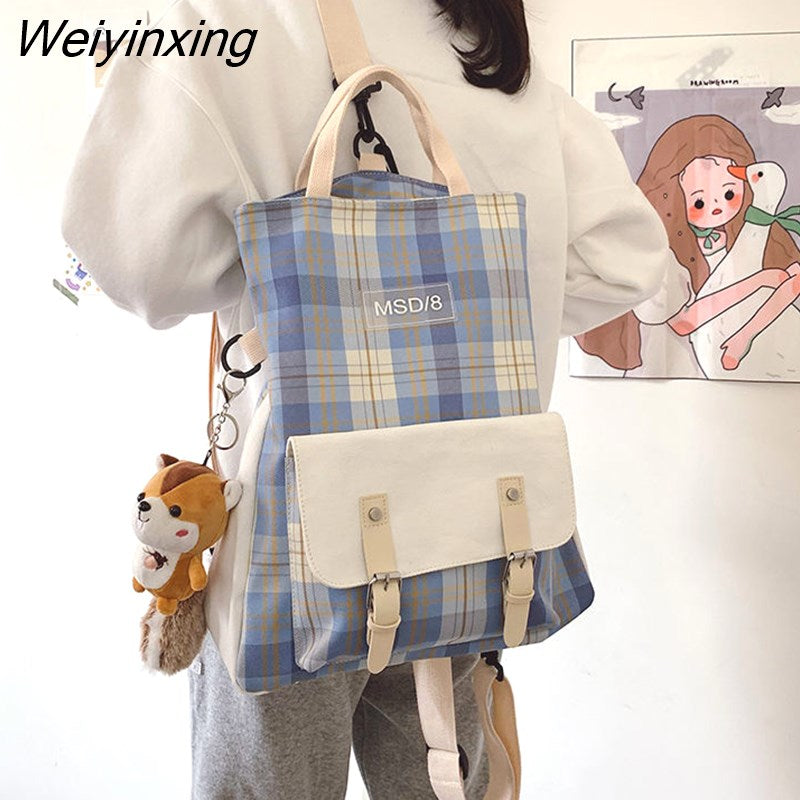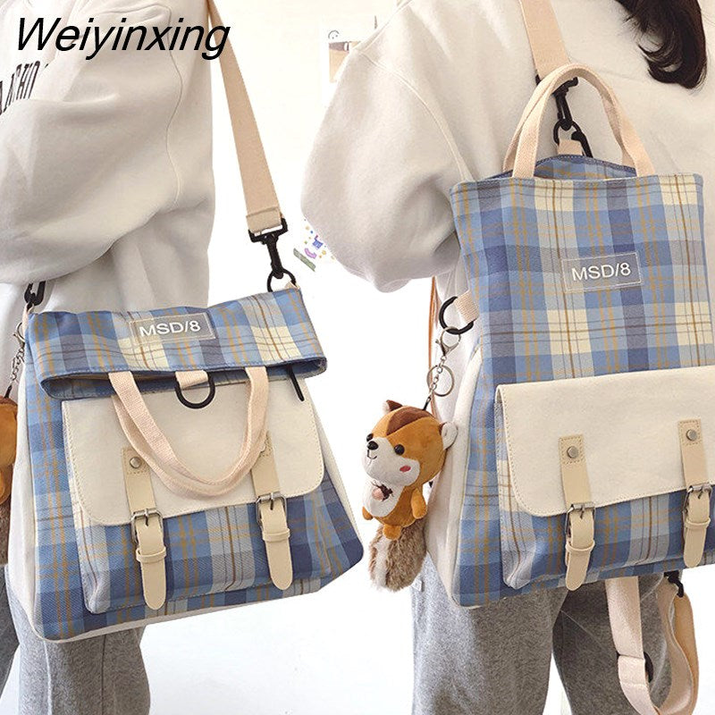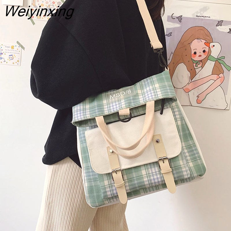Weiyinxing Women Canvas Bag Women's Messenger Bag Students' Class Bag Large Capacity Backpack Multifunctional Bag Nylon Lattice Bag Handbag