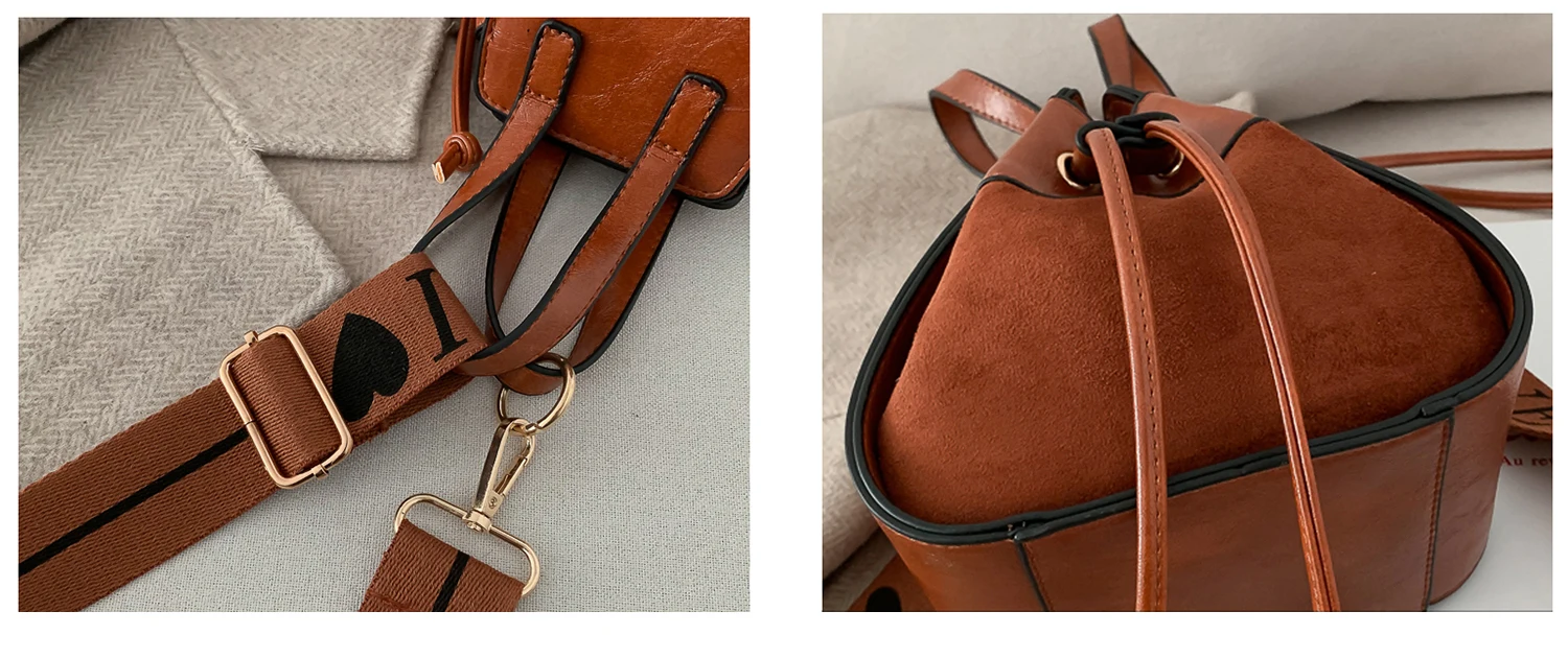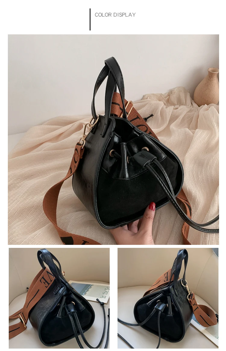 Weiyinxing Women Crossbody Bags Fashion All-Match Drawstring Mini Bucket Packs Autumn New Soft Leather Ladies Shoulder Bag