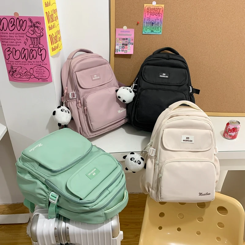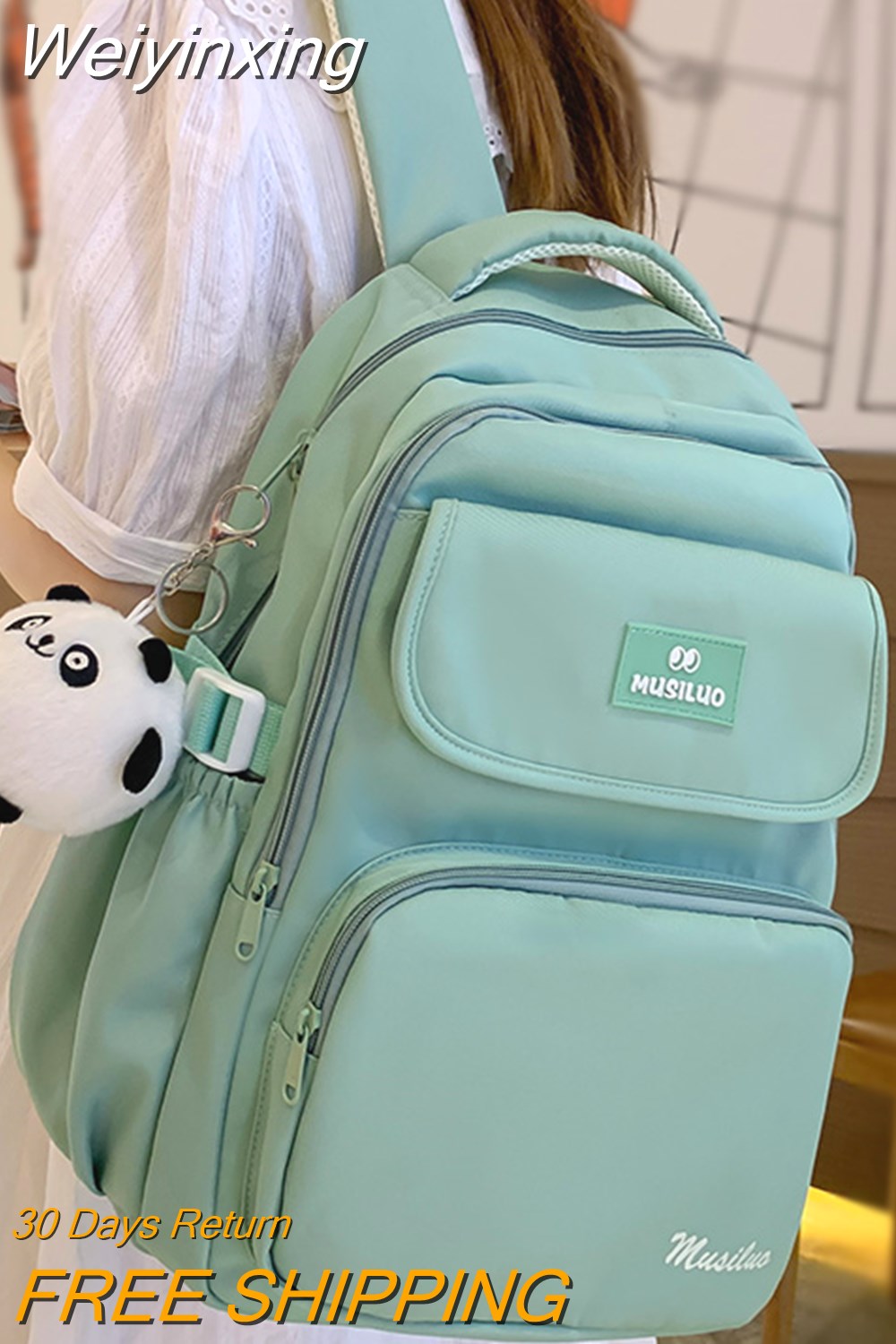 Weiyinxing Women Cute Green Student Backpack Fashion Kawaii Girl School Bags Female Laptop College Backpack Trendy Cool Lady Nylon Book Bag