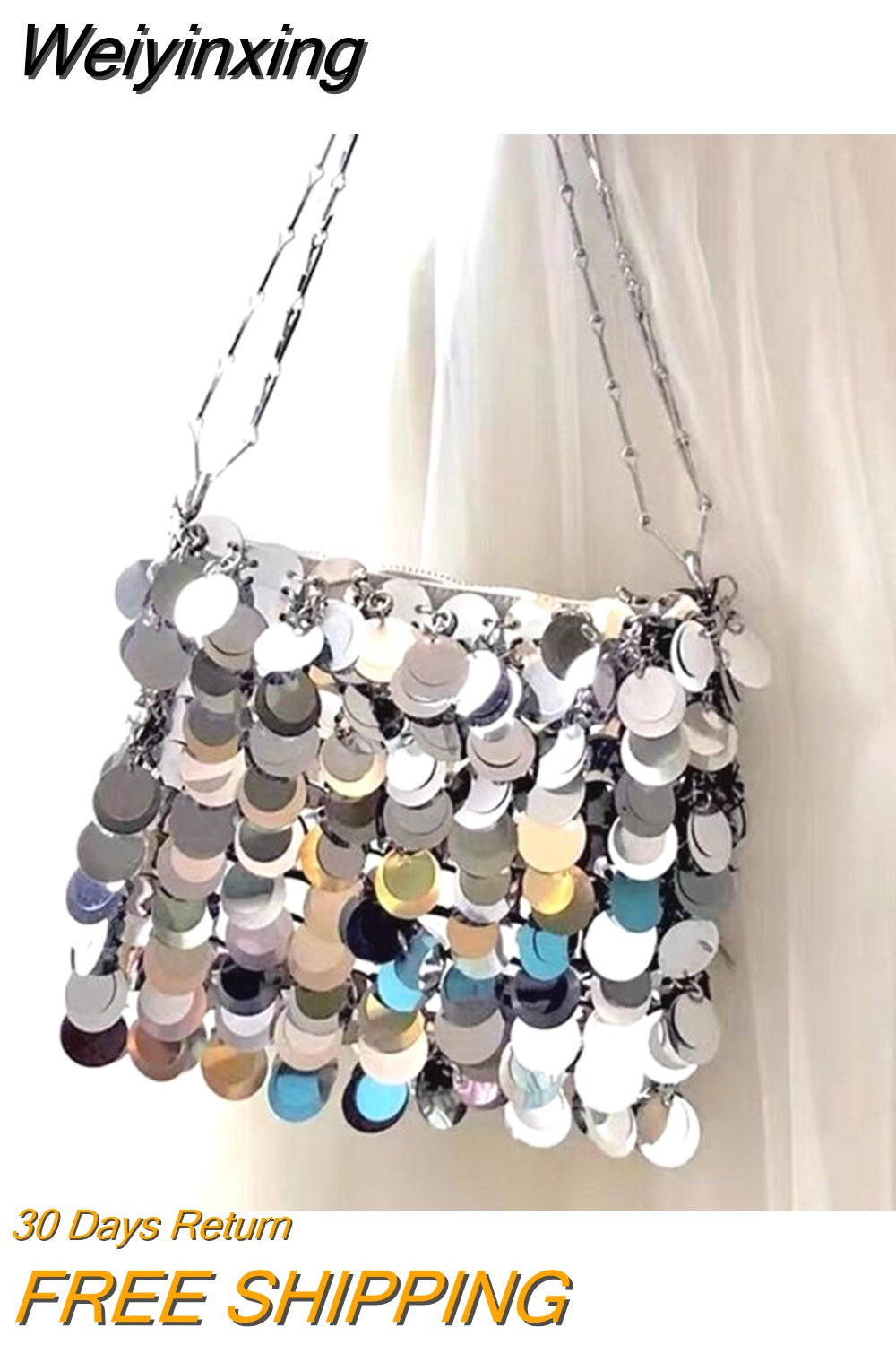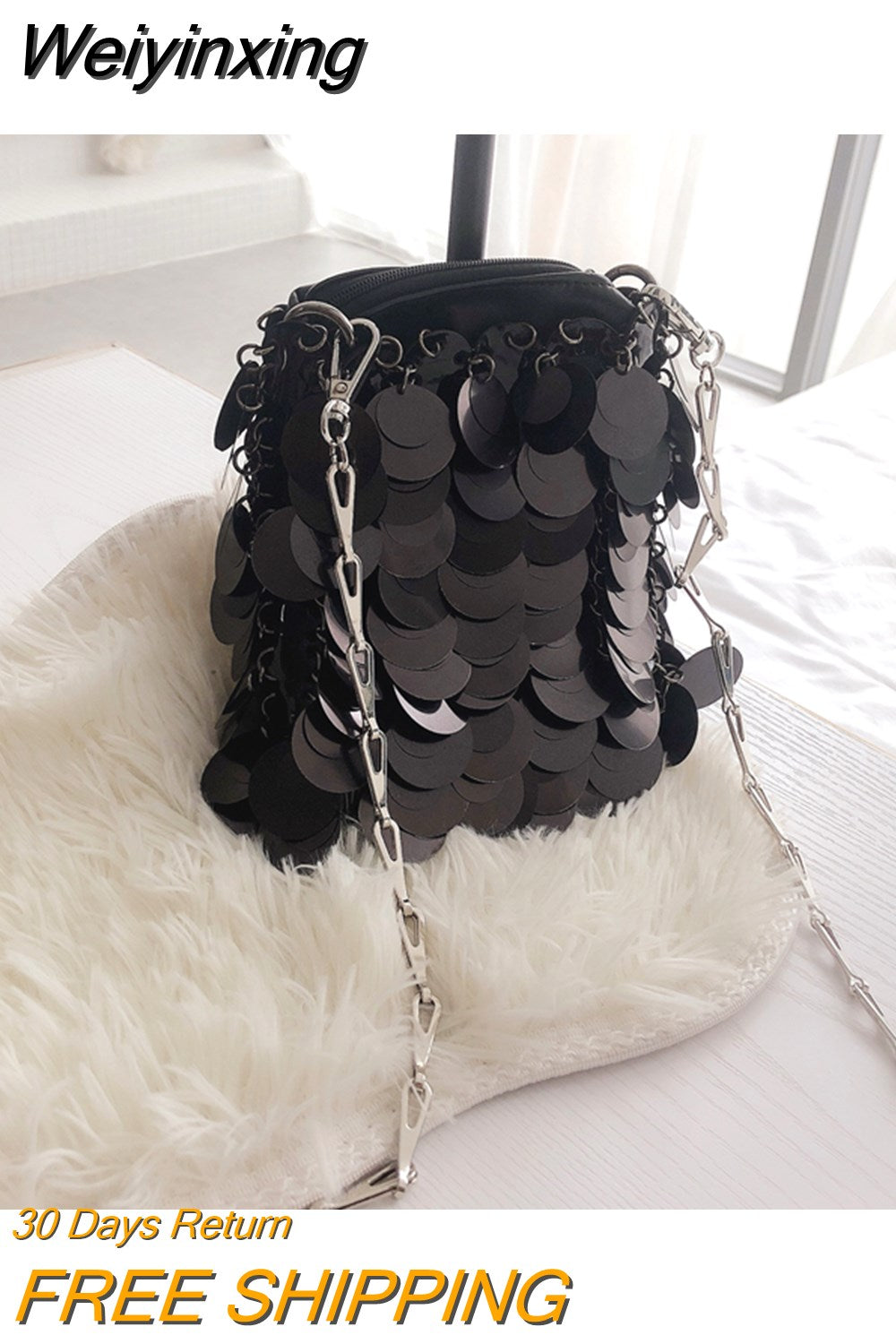 Weiyinxing Women Mini Bag Sequins Handbags Silver Bag Women Small Tote Bag Bling Bling Fashion Lady Bucket Handbags Girls Glitter Purses