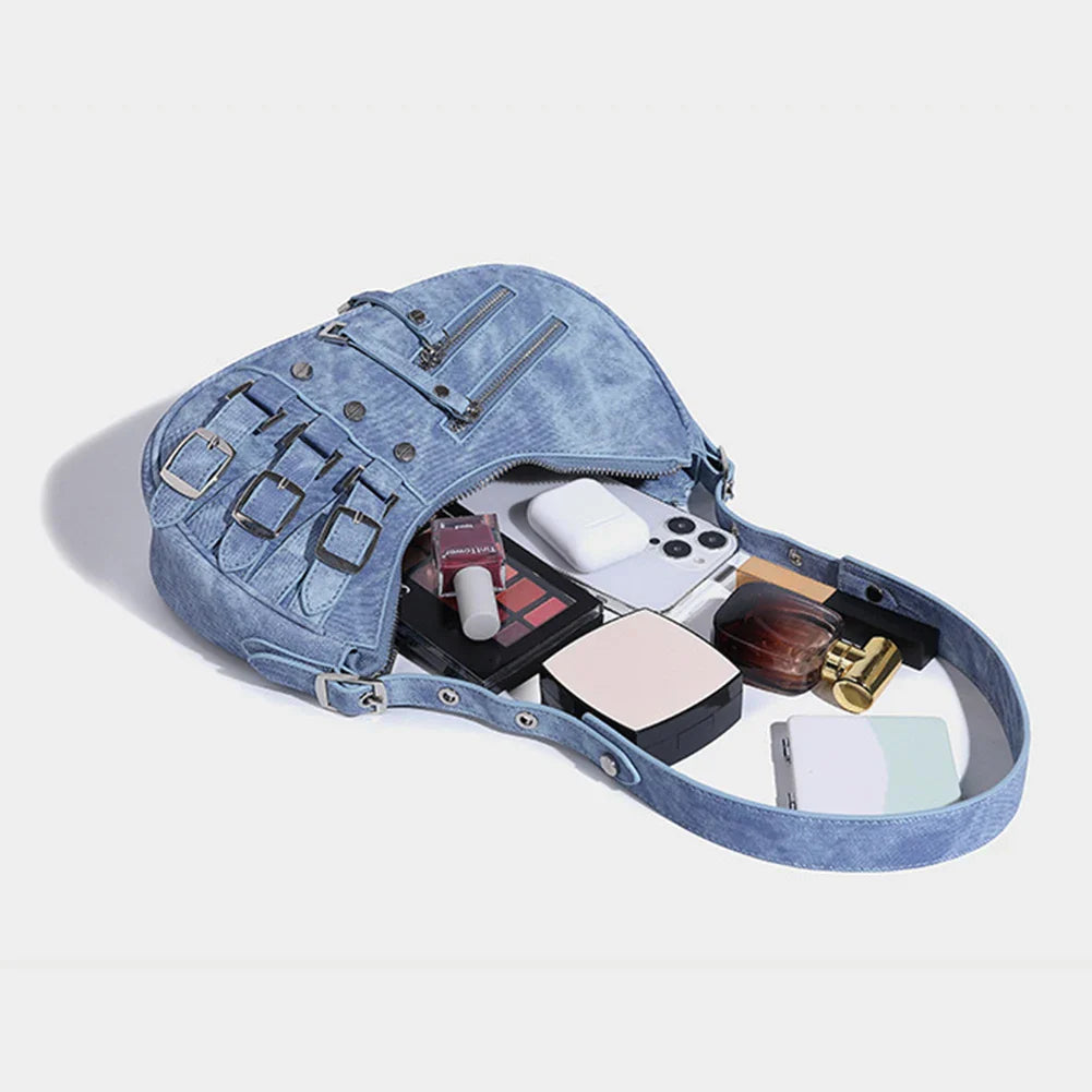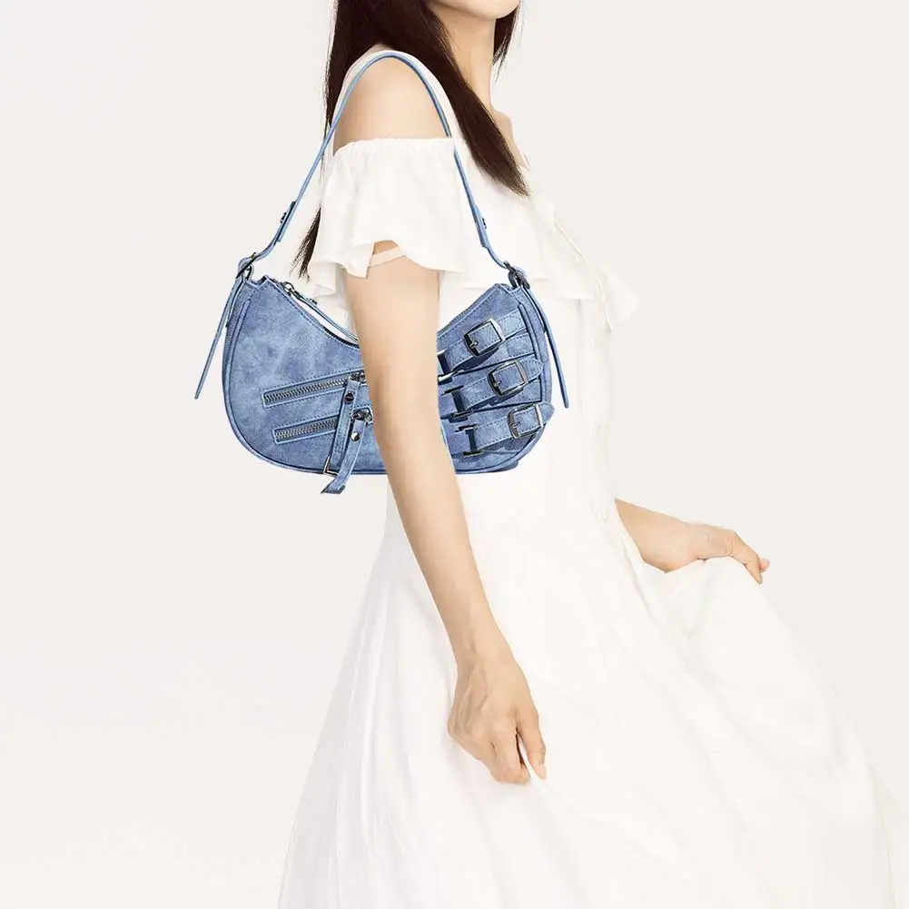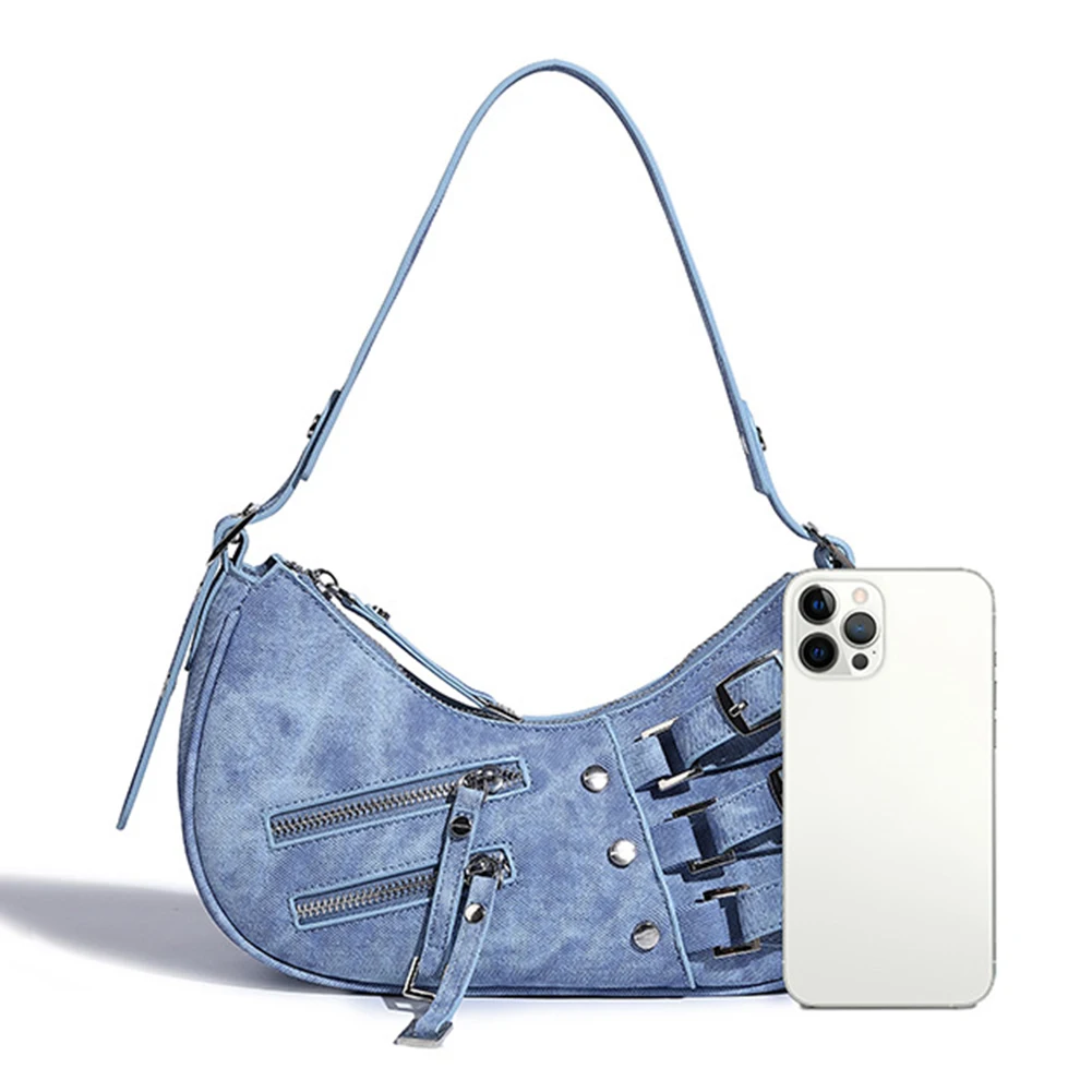 Weiyinxing Women Retro Shoulder Bag Zipper Y2k Handbag Purse Strap Adjustable Satchel Hobo Bag Vintage Armpit Bag Aesthetic Purse