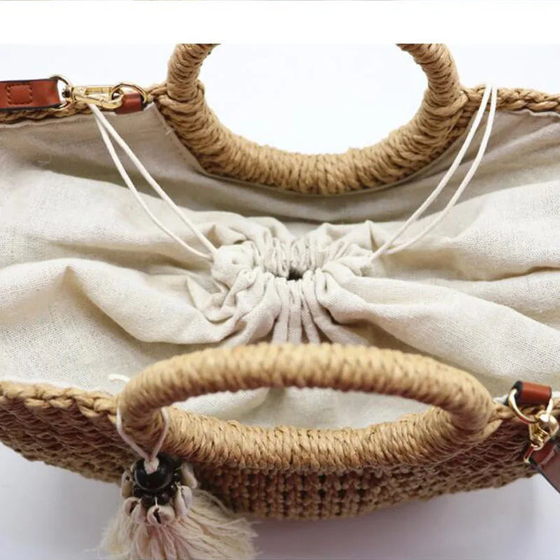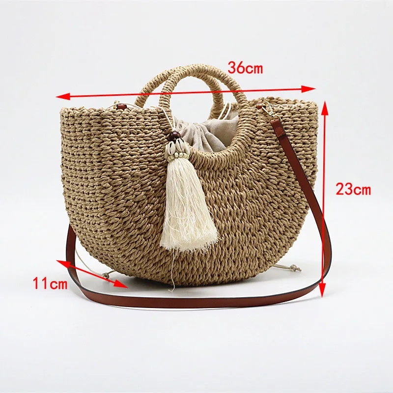 Weiyinxing Women's Accessories Bags Spring / Summer 2024 New Fashion Casual Round Handle Thick Papyrus Woven Shopping Bag