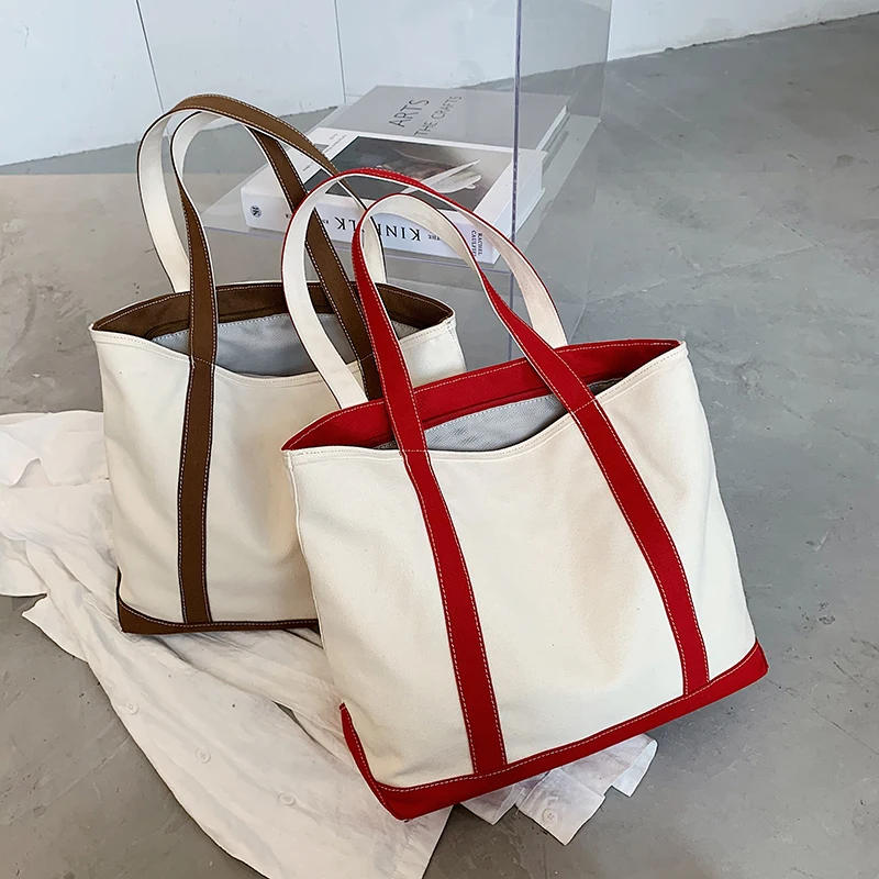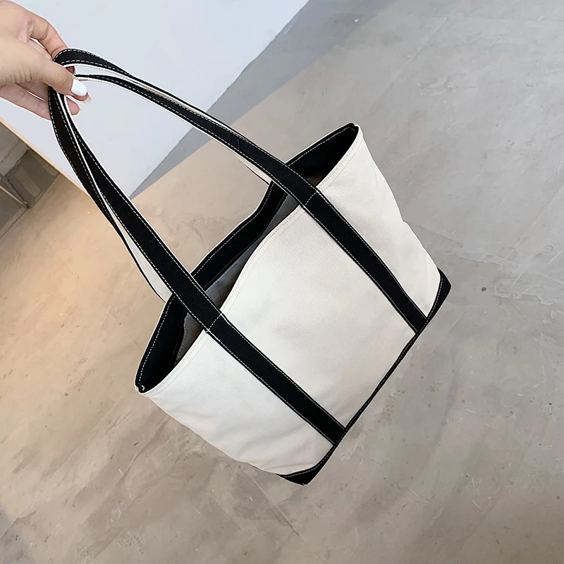 Weiyinxing Women's Bag Canvas Striped Handbag Large Capacity Single Shoulder Bag Simple Designer For Female Casual Tote Shopper Handle Bags