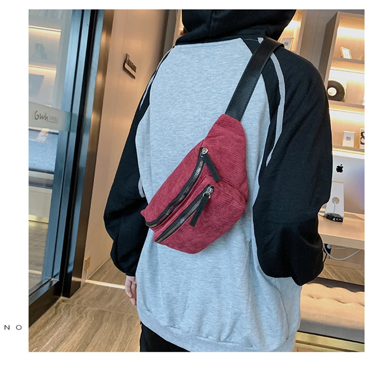 feature1: corduroy Waist Bag designer Zipper Chest Bag