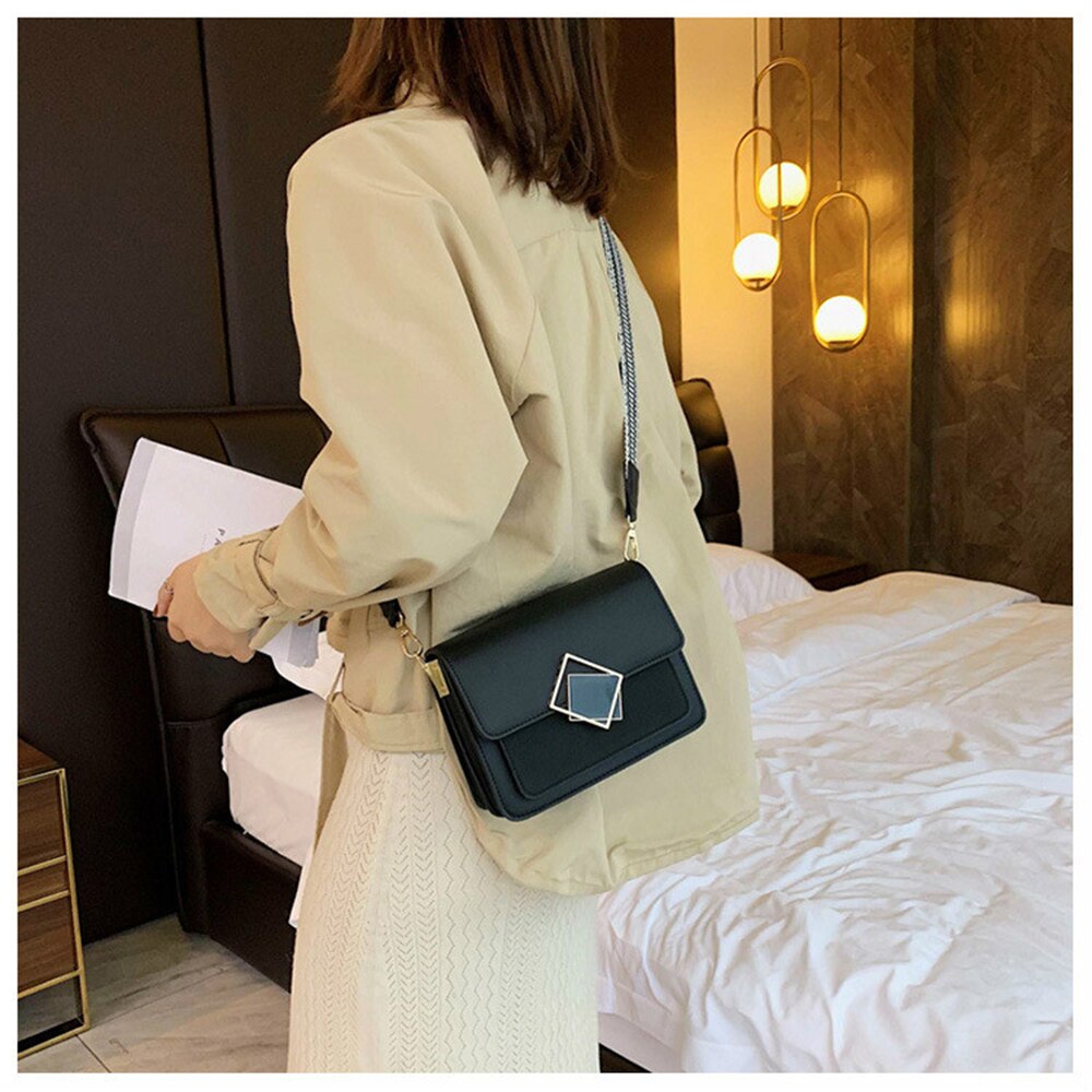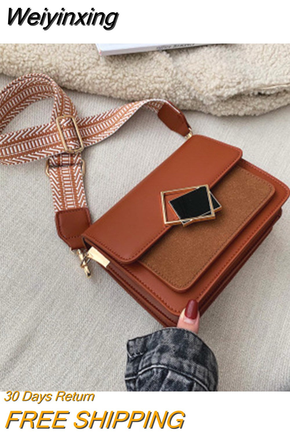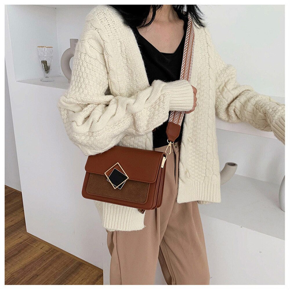 Weiyinxing Women's Square Handbag Retro Shoulder Bag Leather Wide Shoulder Strap Small Square Bag Female's Tote Crossbody Bag Female Wallet