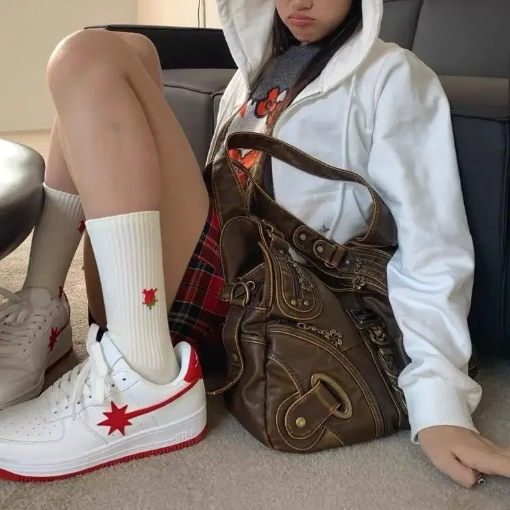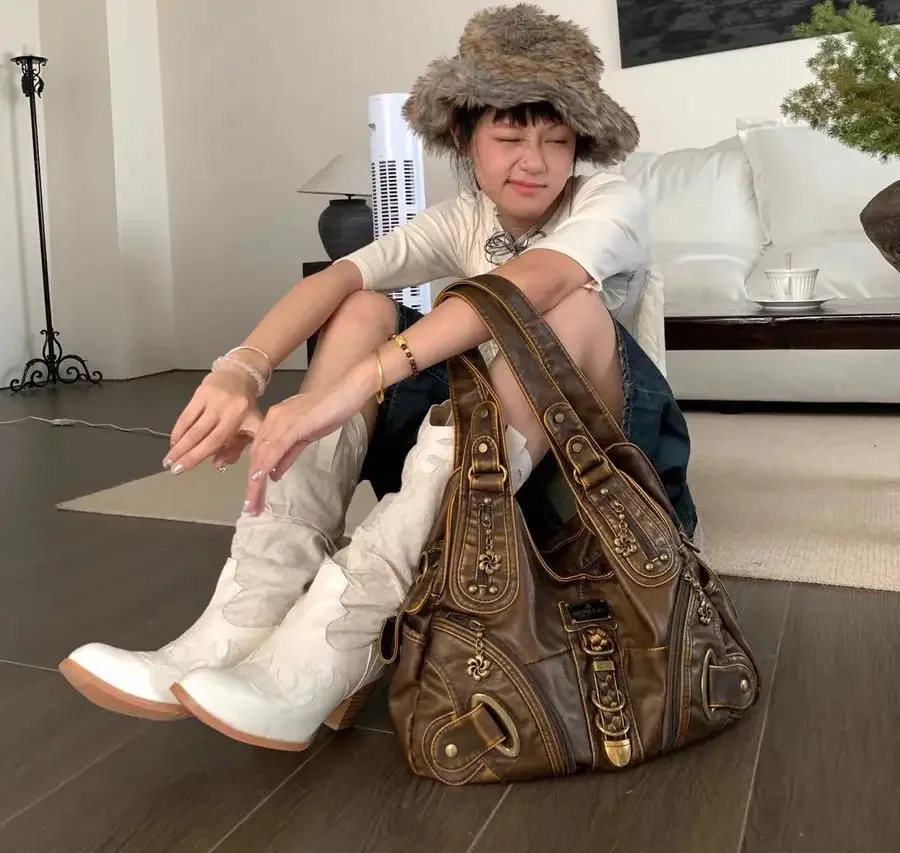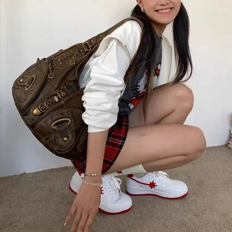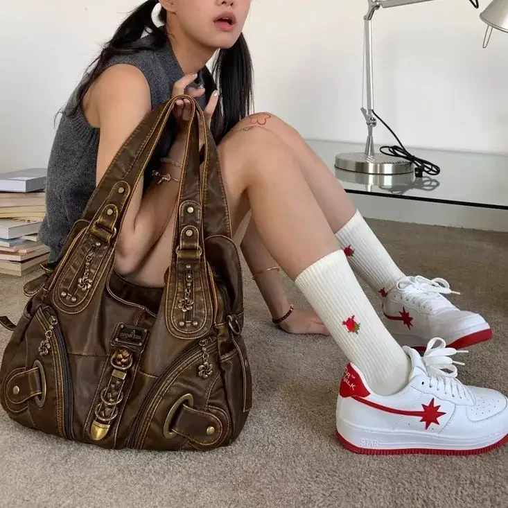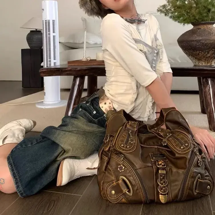 Weiyinxing Y2k Vintage Womens Shoulder Bag Large Capacity Casual Pu Leather Tote Bag American Retro Luxury Designer Ladies Armpit Bag